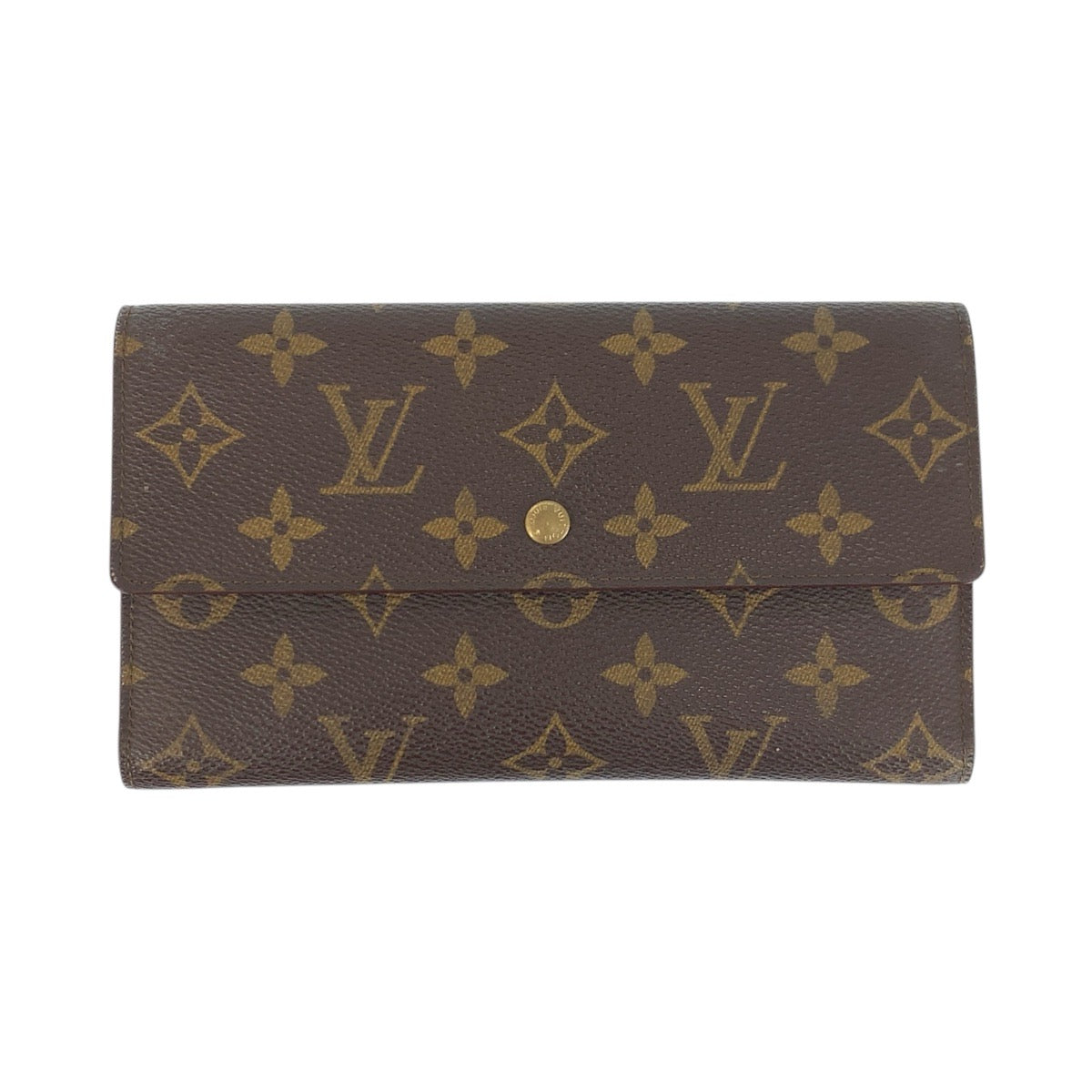 LOUIS VUITTON Long Wallet Purse M61215 PVC Brown Gold Metal Monogram Porte Tresor International