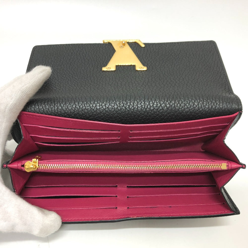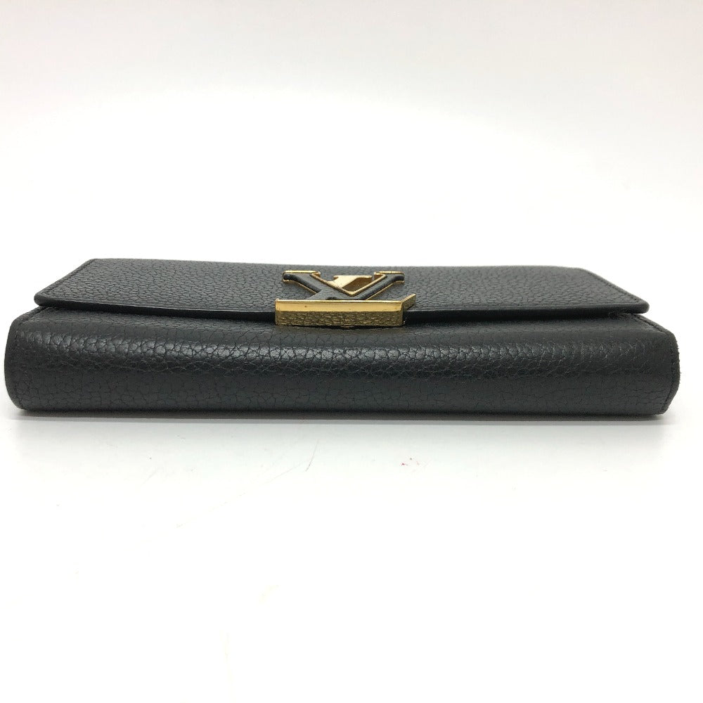 LOUIS VUITTON Long Wallet Purse M61248 Taurillon Clemence Leather black LV logo Portefeuille Capsine Women Used Authentic