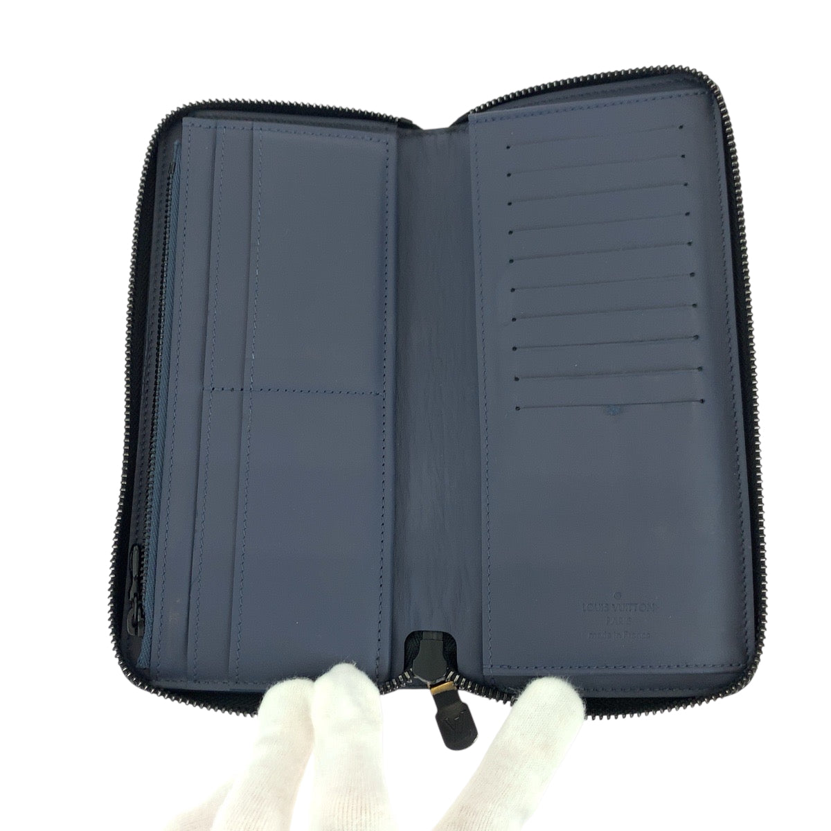 LOUIS VUITTON Long Wallet Purse M80423 Calfskin Navy Blue Black Metal Long Wallet Purse Zip Around monogram shadow Zippy Wallet Vertical mens Used Authentic
