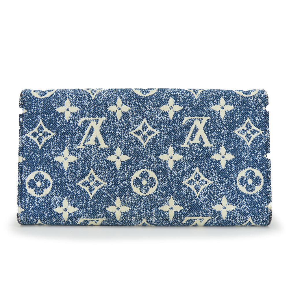 LOUIS VUITTON Long Wallet Purse M81183 Monogram, Jacquard Denim Marine Portefeuille Sarah Women Used Authentic