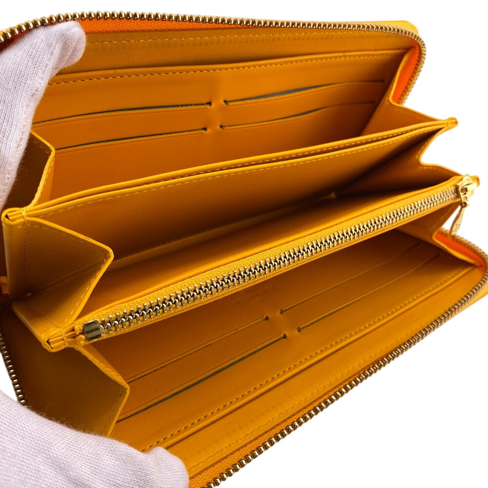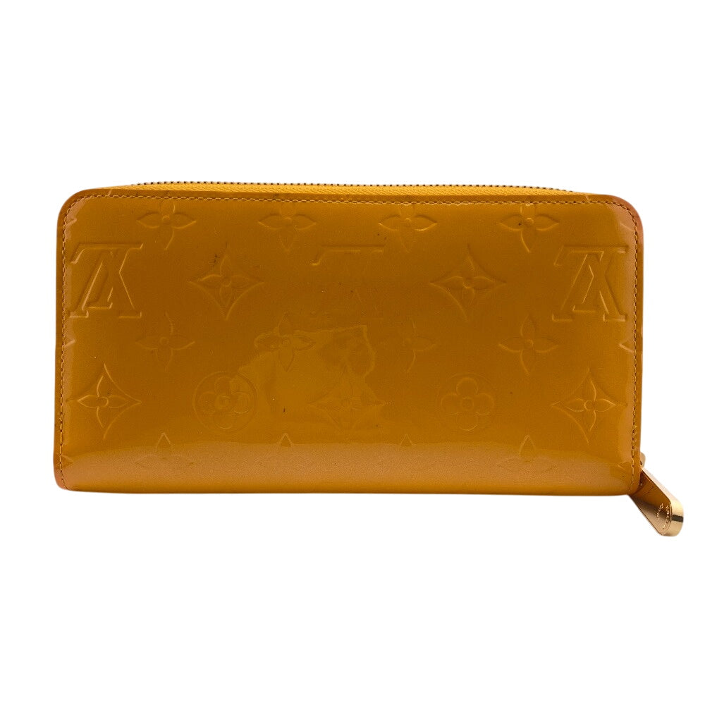 LOUIS VUITTON Long Wallet Purse M91733 Vernis yellow Zip Around Monogram Vernis Zippy wallet Women Used Authentic