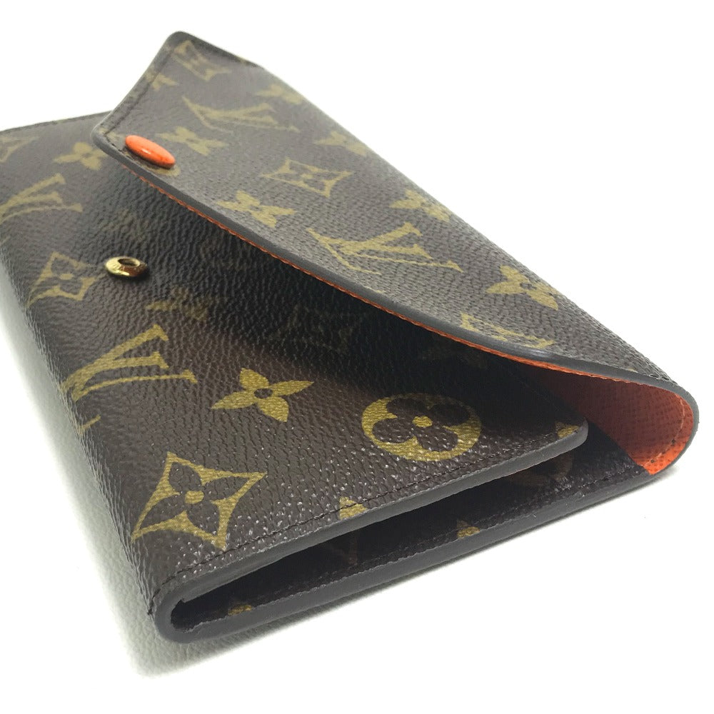 LOUIS VUITTON Long Wallet Purse Monogram canvas Brown x orange Comes with a coin case Wallet Women Used Authentic