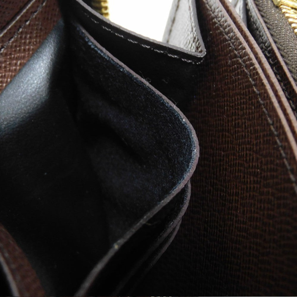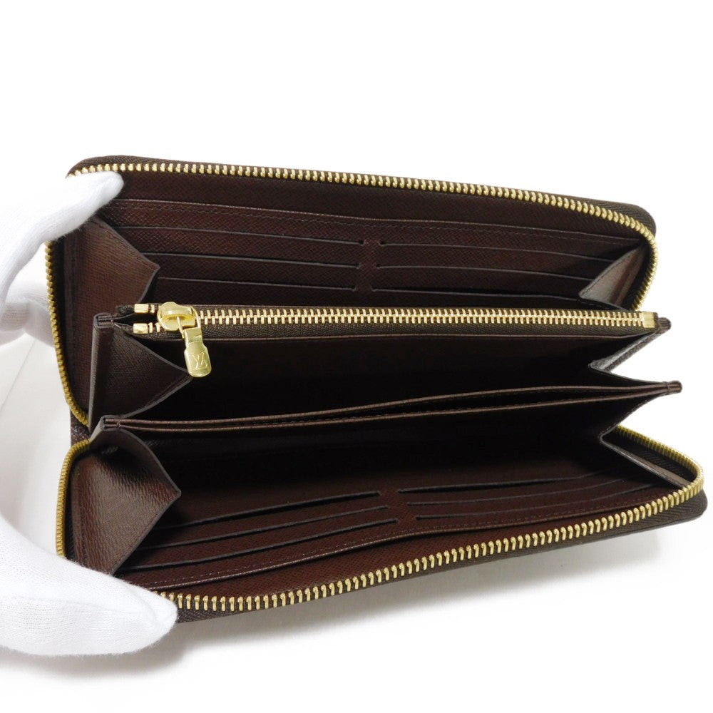 LOUIS VUITTON Long Wallet Purse N41661 Damier canvas x grain leather (embossed) Ebene logo brown new zip around checkered pattern louis vuitton Damier Zippy wallet unisex(Unisex) Used Authentic