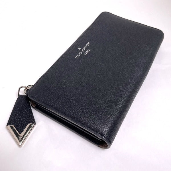 LOUIS VUITTON Long Wallet Purse N60146 leather Noir Voca Stains all leather Parnasea Portefeuille Comet mens Used Authentic