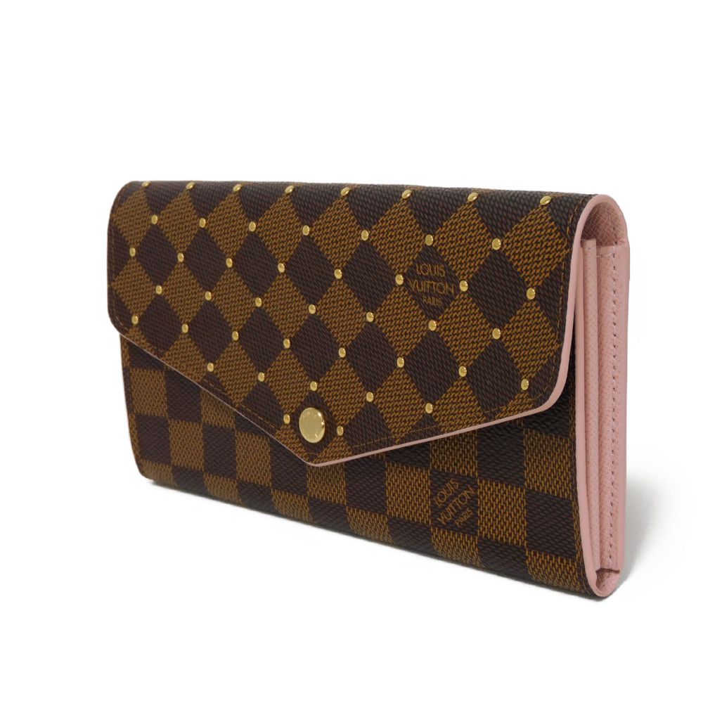 LOUIS VUITTON Long Wallet Purse N60249 Damier canvas x grain leather (embossed) Rose valerine New Brown Gold Pink Bifold Wallet Damier Studs Portefeuille Sarah Women Used Authentic