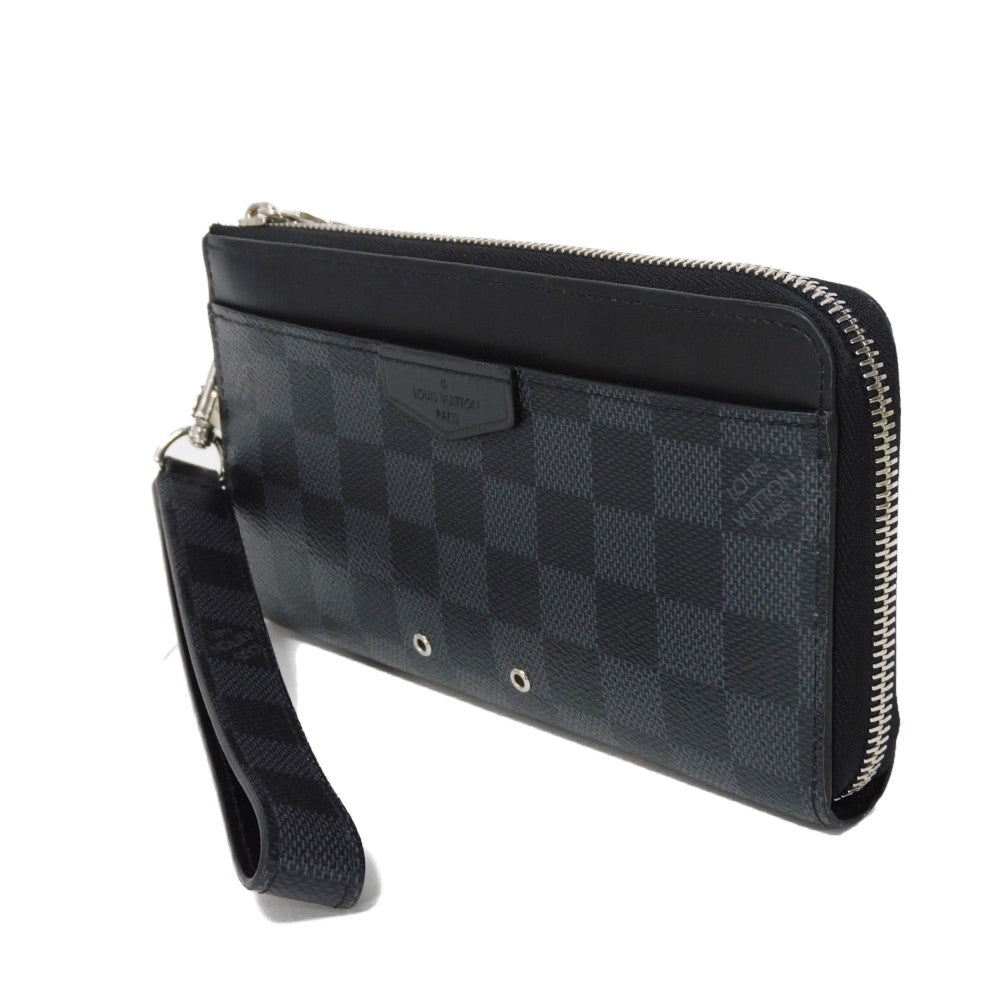 LOUIS VUITTON Long Wallet Purse N60379 Damier Graphite canvas x cowhide leather Noir Logo embossed L-shaped zipper Strap RFID IC chip Damier Graphite Zippy dragonne mens Used Authentic