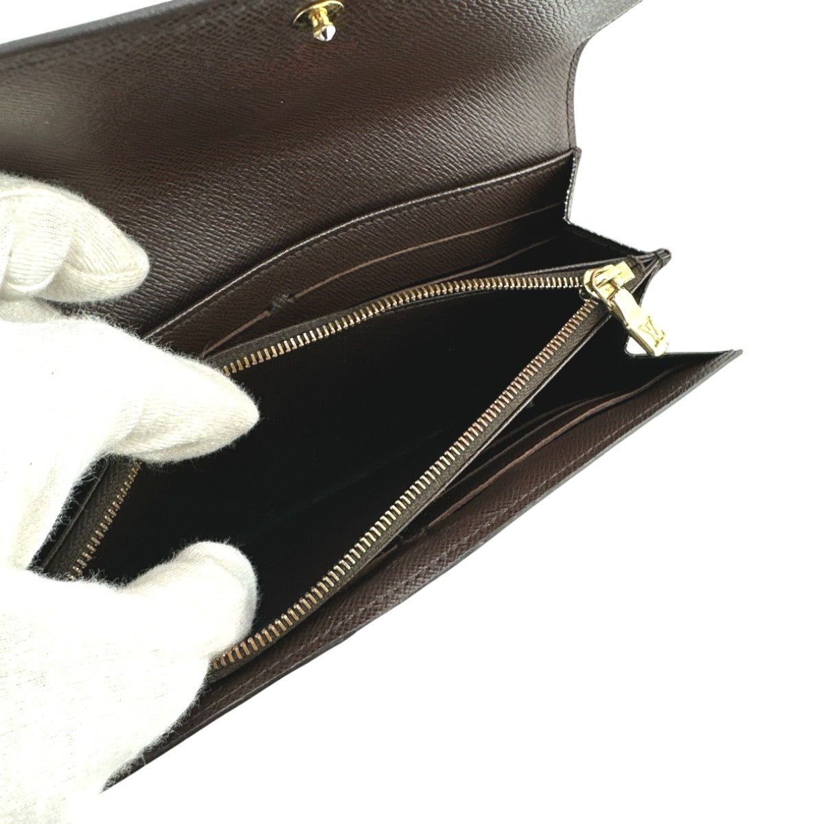 LOUIS VUITTON Long Wallet Purse N63209 Damier canvas Brown Zip Around Damier Portefeuille Sara Women Used Authentic