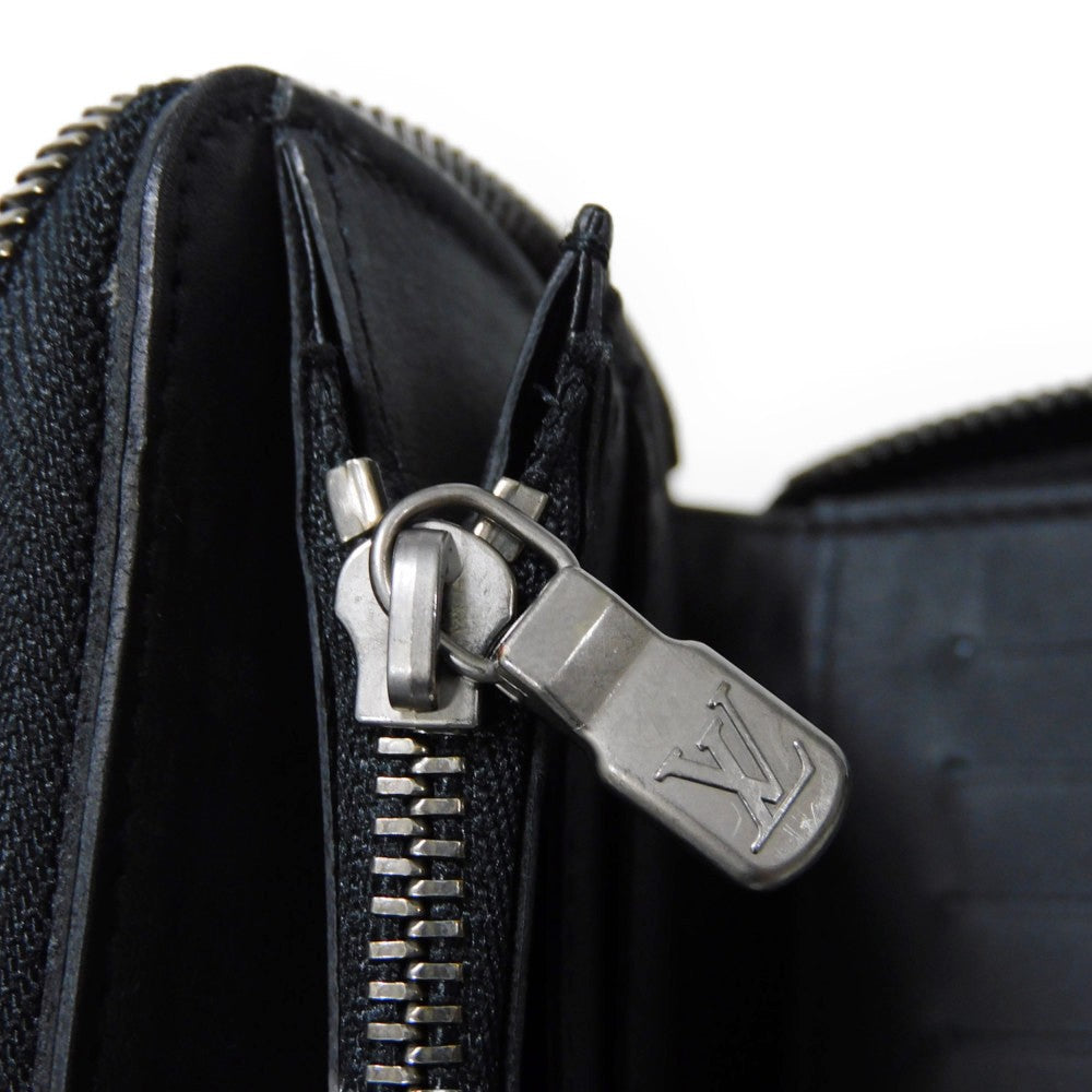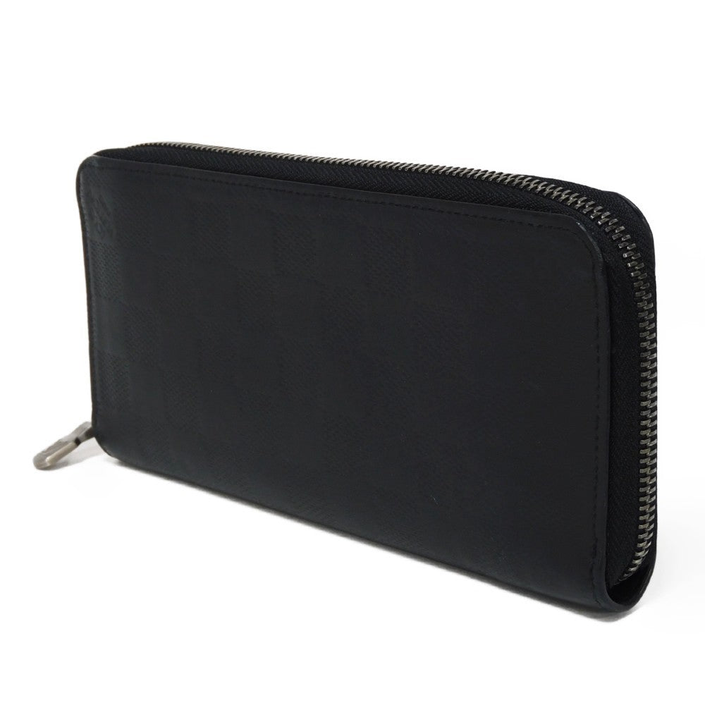LOUIS VUITTON Long Wallet Purse N63548 Anfini Leather (Damie embossed) onyx Black New Zip Around RFID Damier Anfini Zippy Wallet Vertical mens Used Authentic