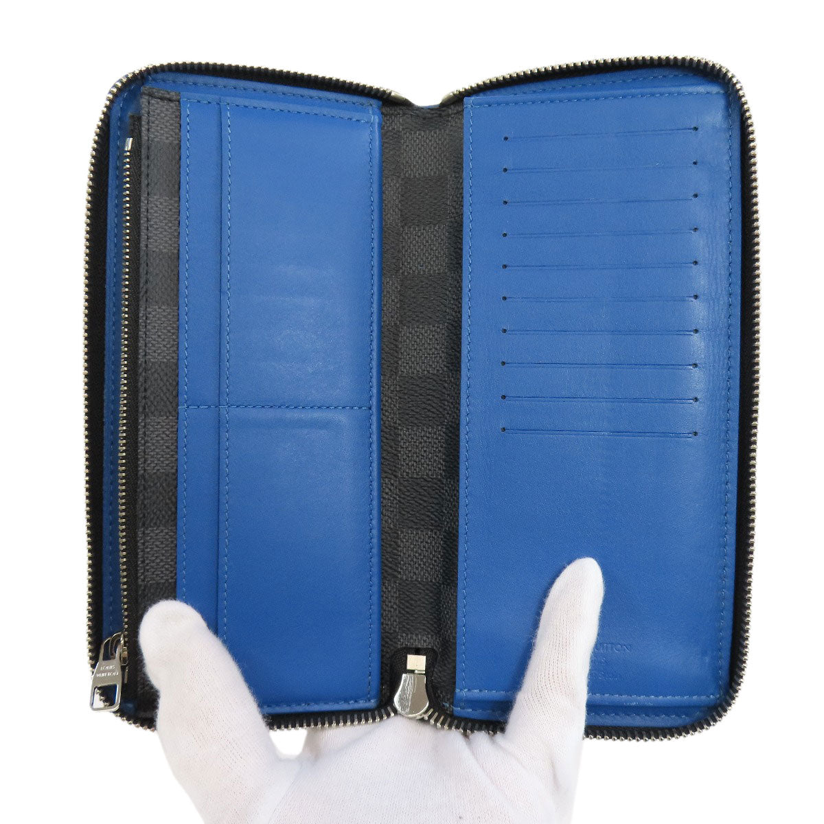 LOUIS VUITTON Long Wallet Purse N64436 Damier canvas black Zippy wallet Vertical mens Used Authentic