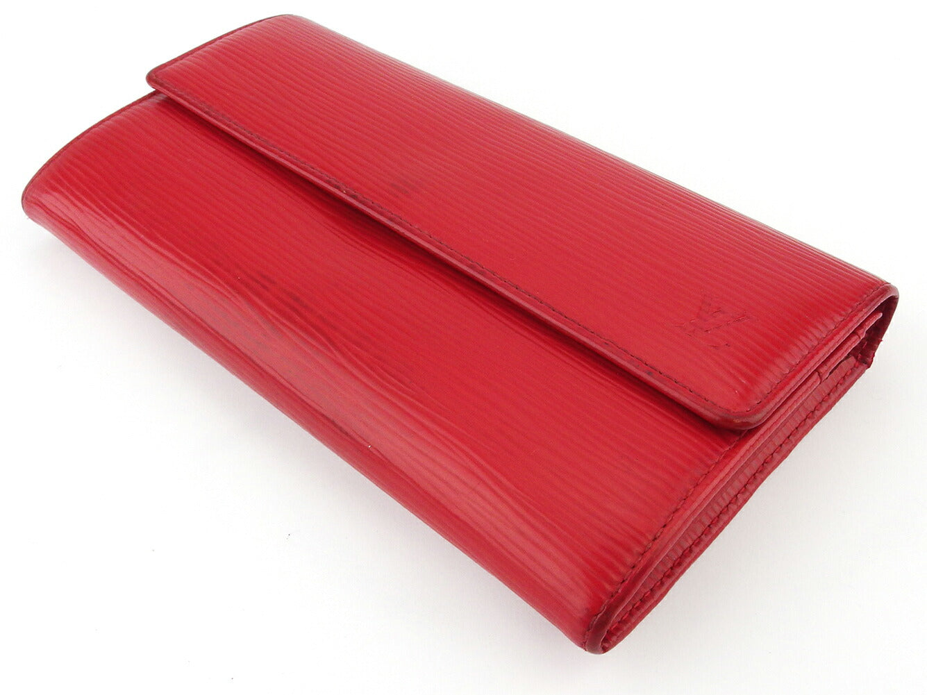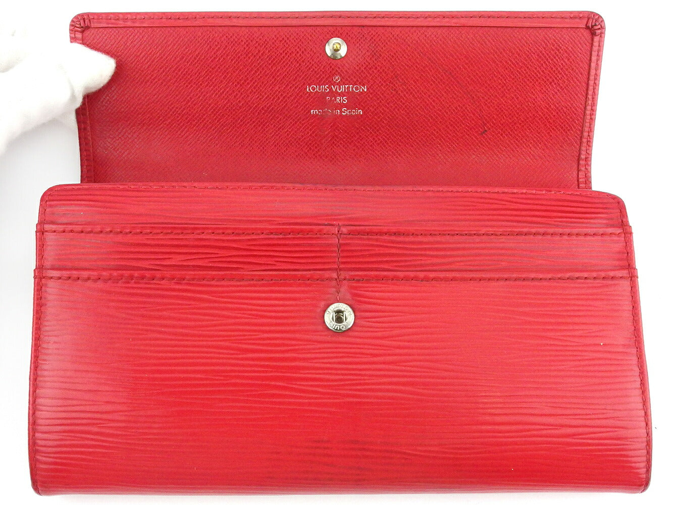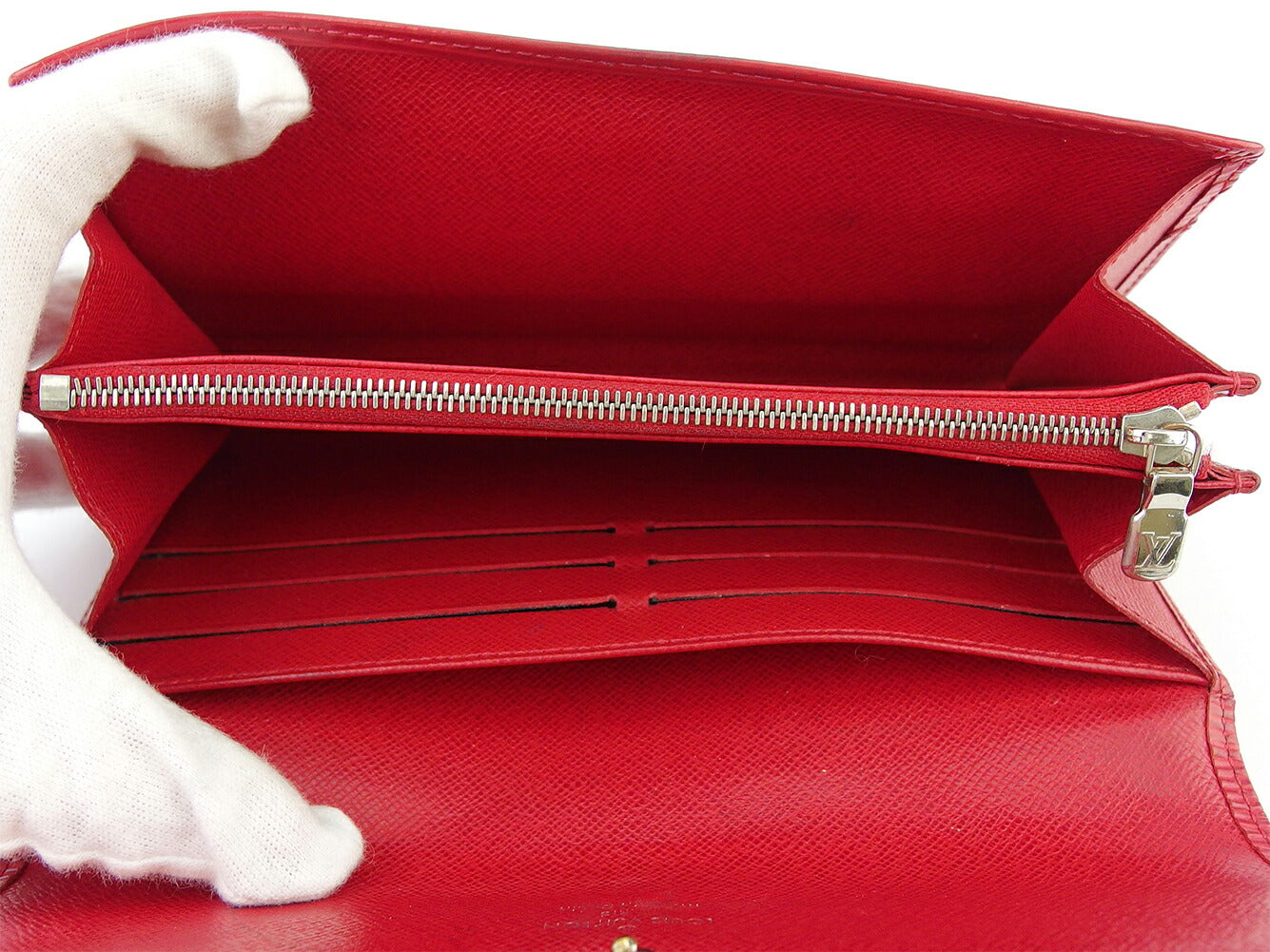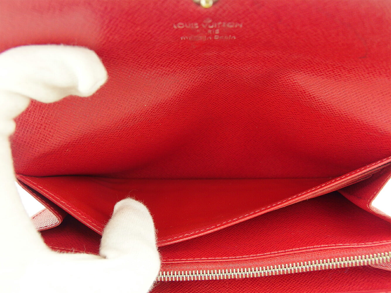 LOUIS VUITTON Long Wallet Purse Red Silver Portefeuille Sarah
