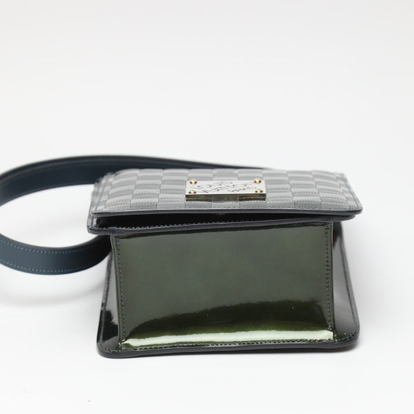 LOUIS VUITTON Shoulder Bag M92128 Patent leather green club handbag Damier Vernis Petrol blue Women Used Authentic