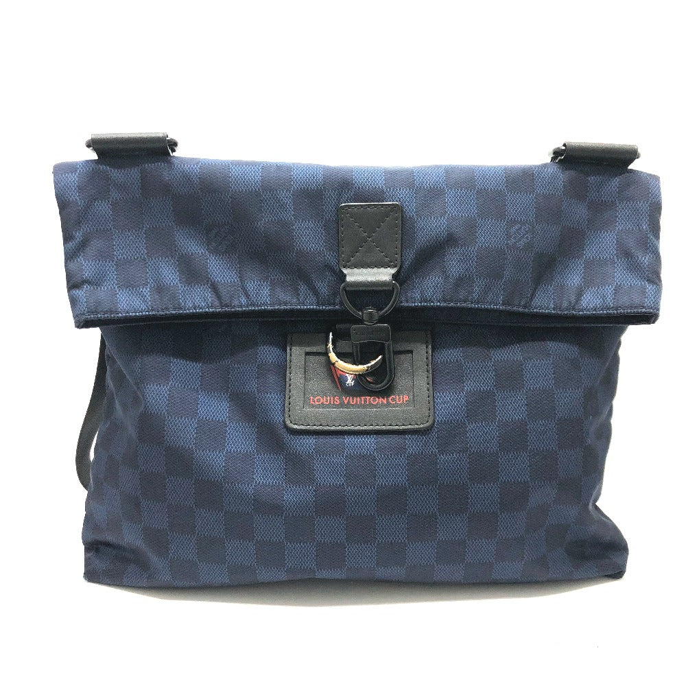 LOUIS VUITTON Shoulder Bag N41251 Nylon Navy Damier Challenge Alize Vuitton Cup mens Used Authentic