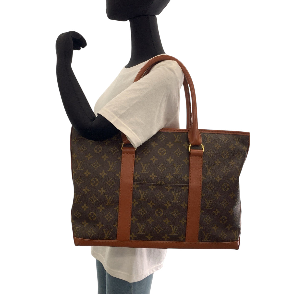 LOUIS VUITTON Tote Bag M42425 PVC Brown Gold Metal Tote Bag Shoulder Bag Monogram Weekend PM mens Used Authentic
