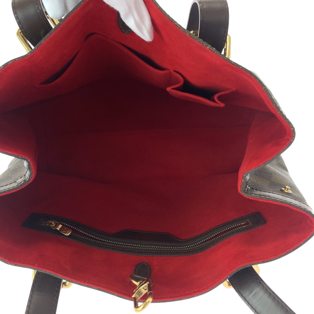 LOUIS VUITTON Tote Bag N51204 PVC Brown Gold Metal Tote Bag Shoulder Bag Damier HamsteadMM Women Used Authentic