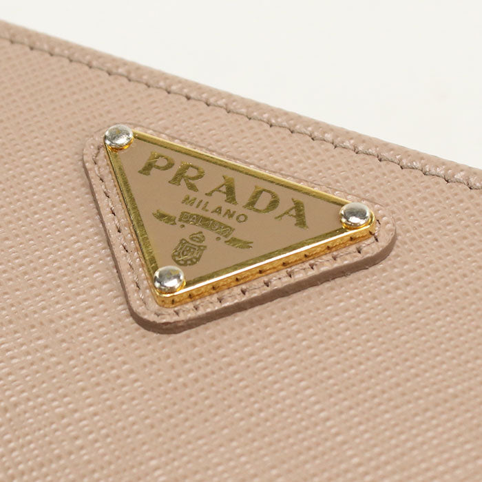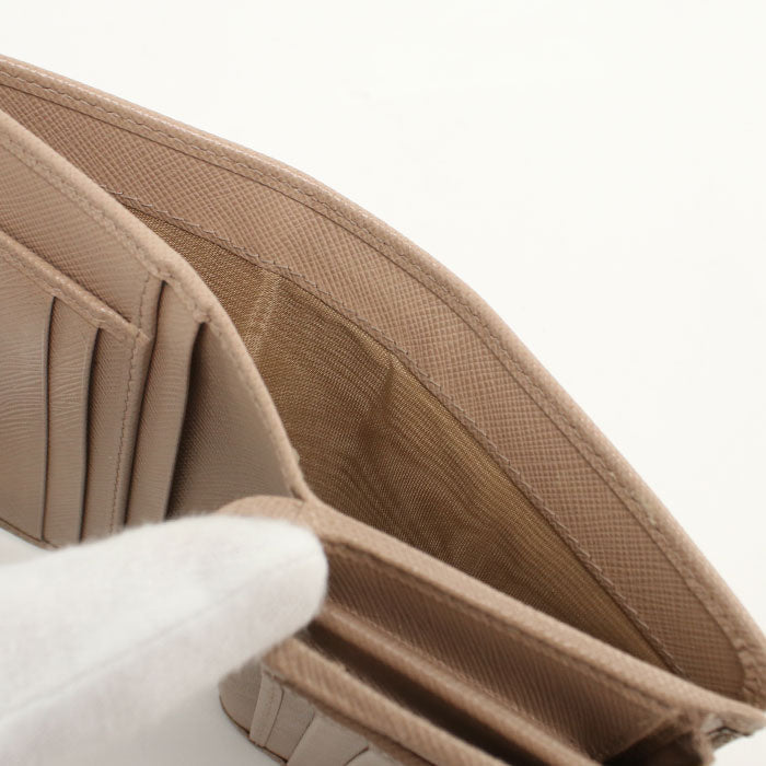 PRADA 1ML225 Bi-fold wallet Saffiano Triangle Wallet leather beige Women
