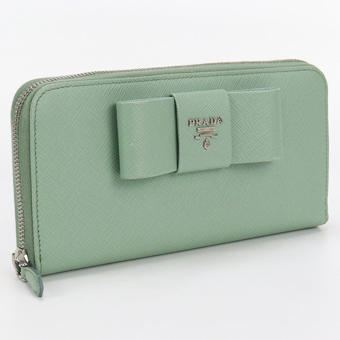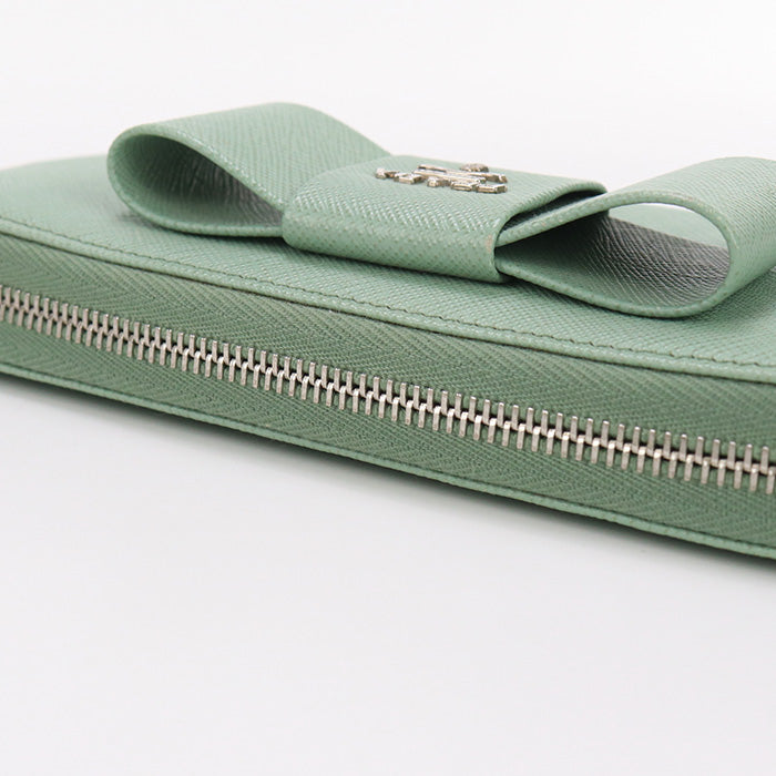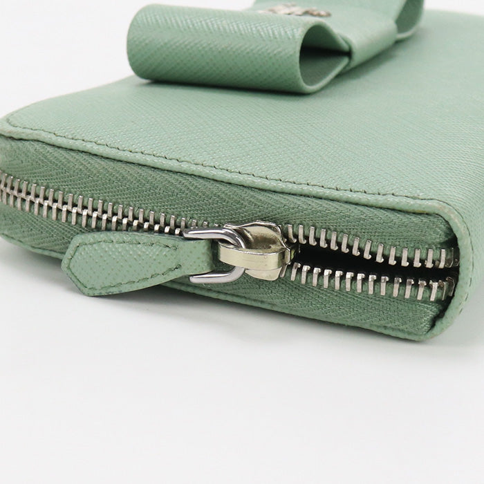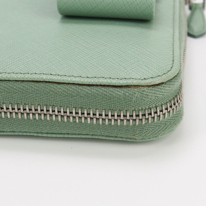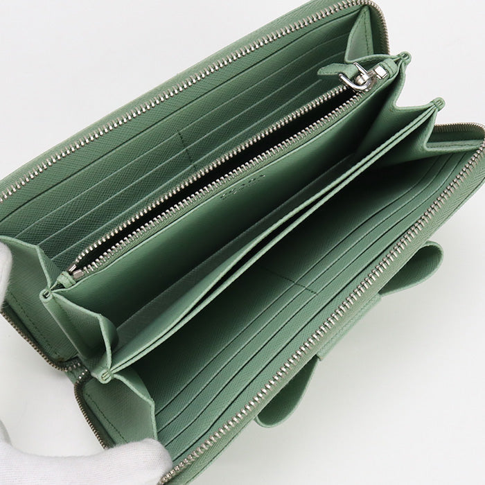 PRADA 1ML506 ZTM F00ZY zip around long wallet Saffiano leather PurseZip green |