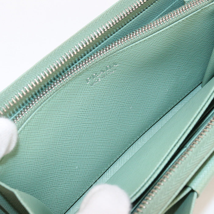 PRADA 1ML506 ZTM F00ZY zip around long wallet Saffiano leather PurseZip green