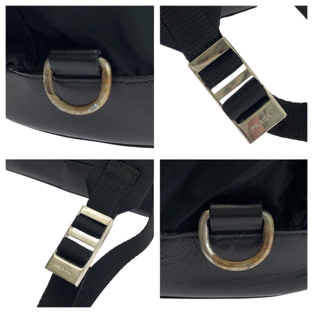 PRADA Backpack Nylon Black SilverMetal Backpack Backpack Test Triangle With logo mens Used Authentic