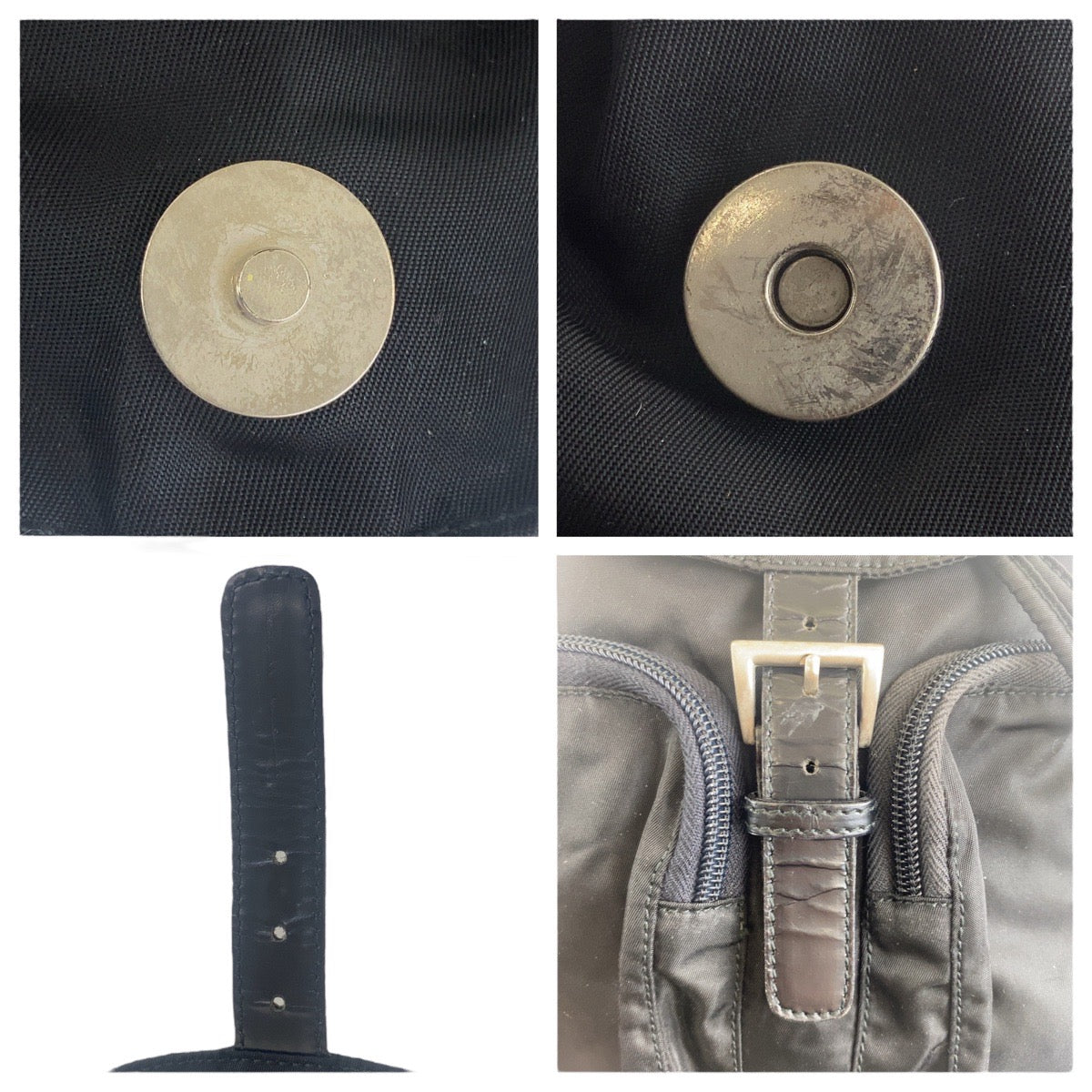 PRADA Backpack Nylon Black SilverMetal Backpack Test Triangle With logo Women Used Authentic