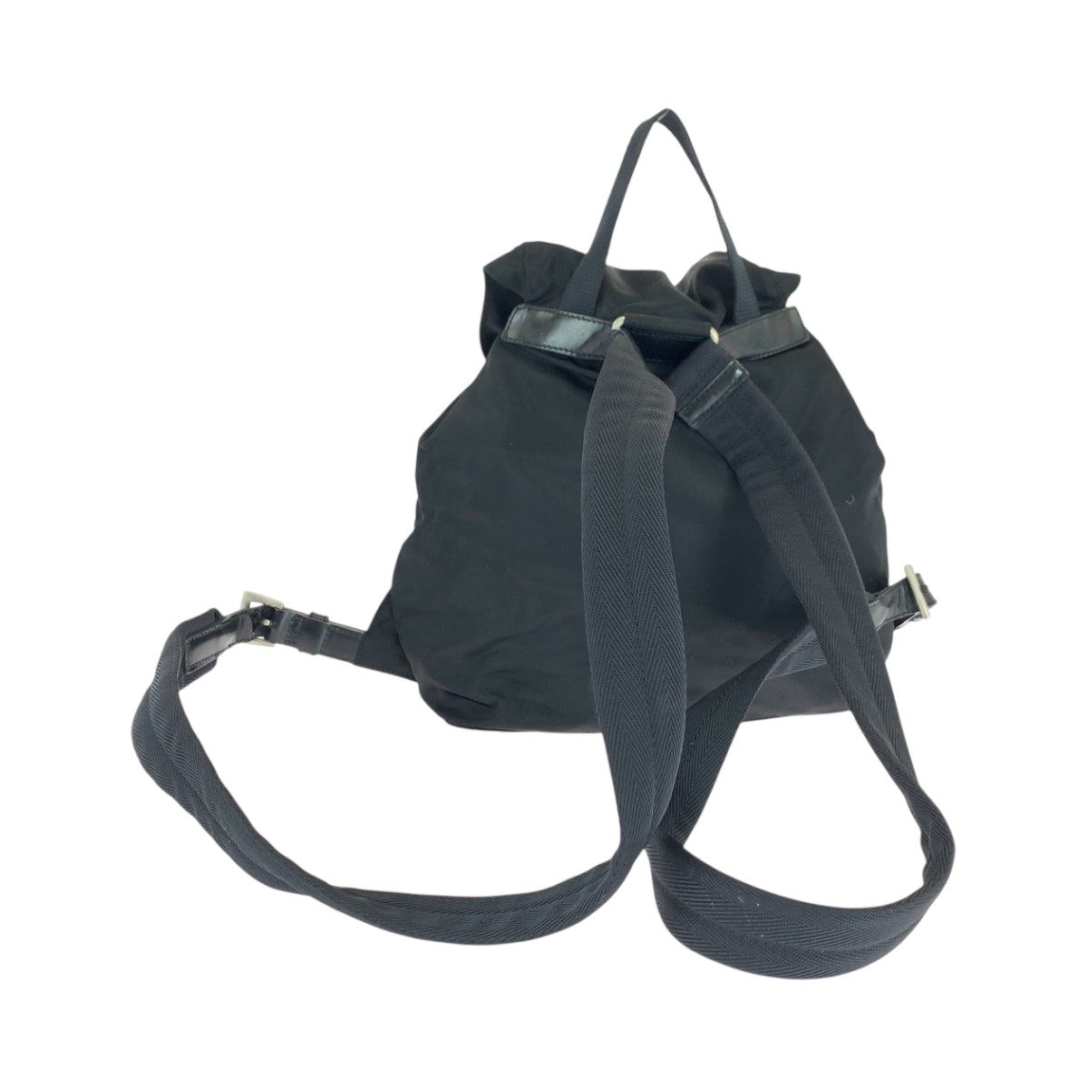 PRADA Backpack Nylon Black SilverMetal Backpack Backpack Test Triangle With logo Women Used Authentic