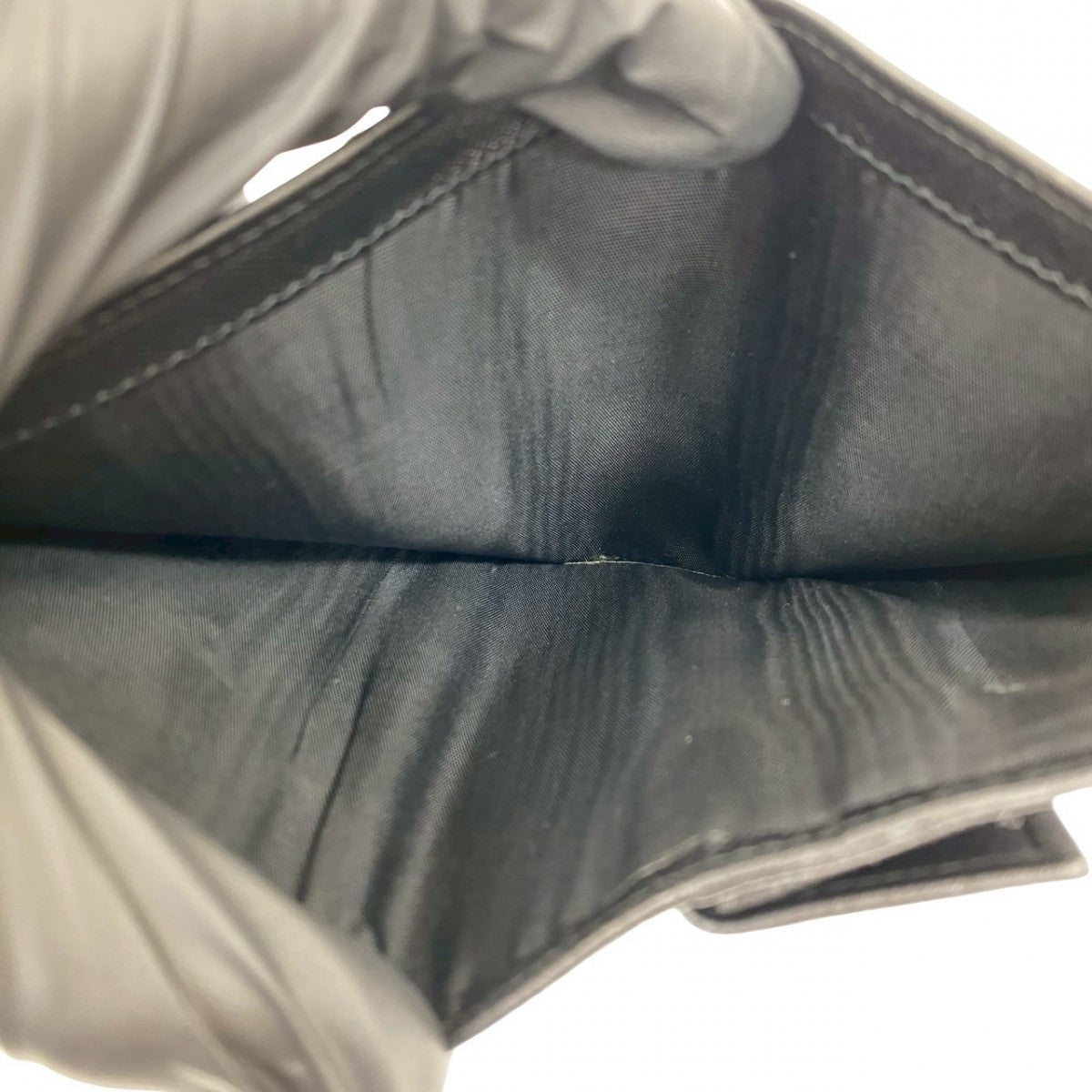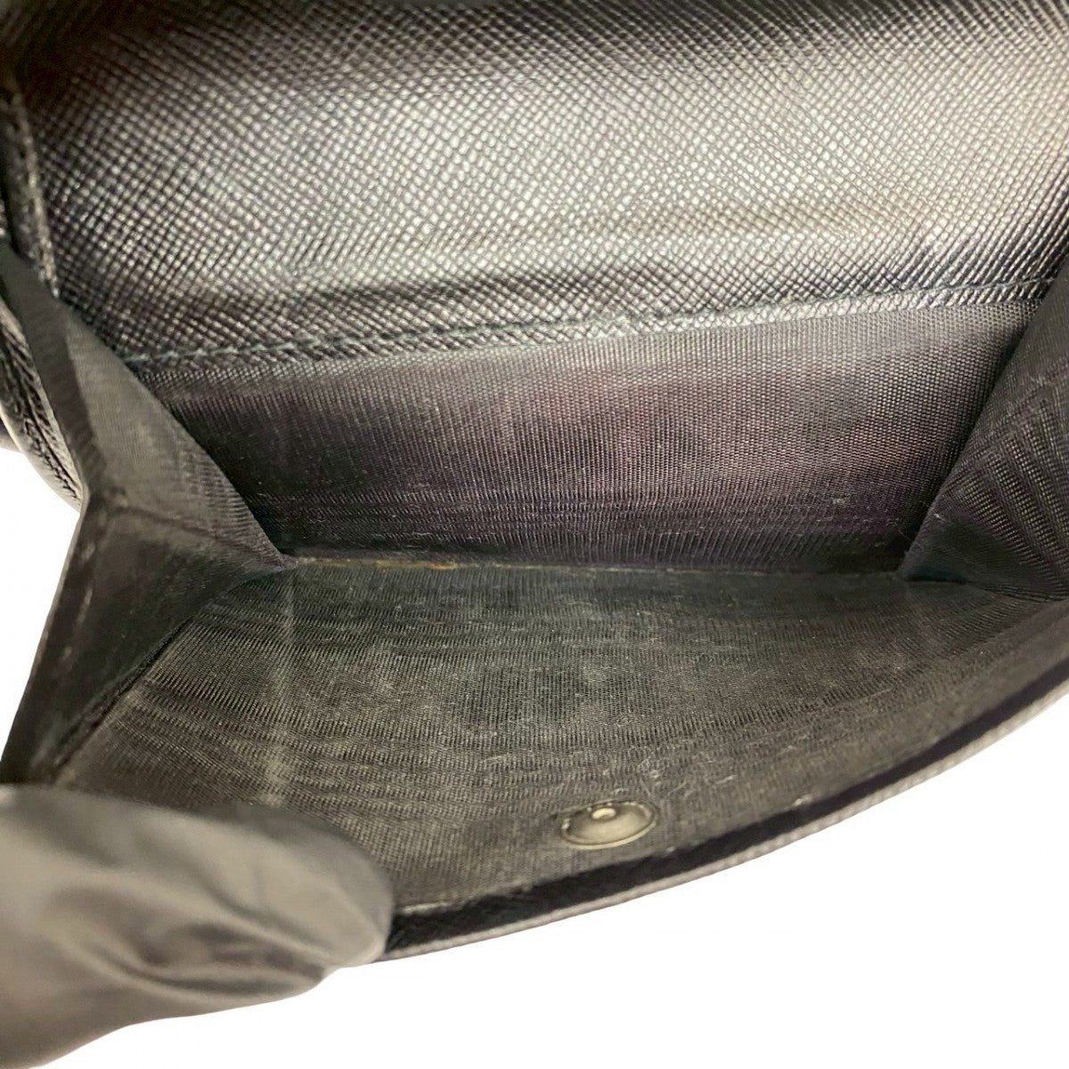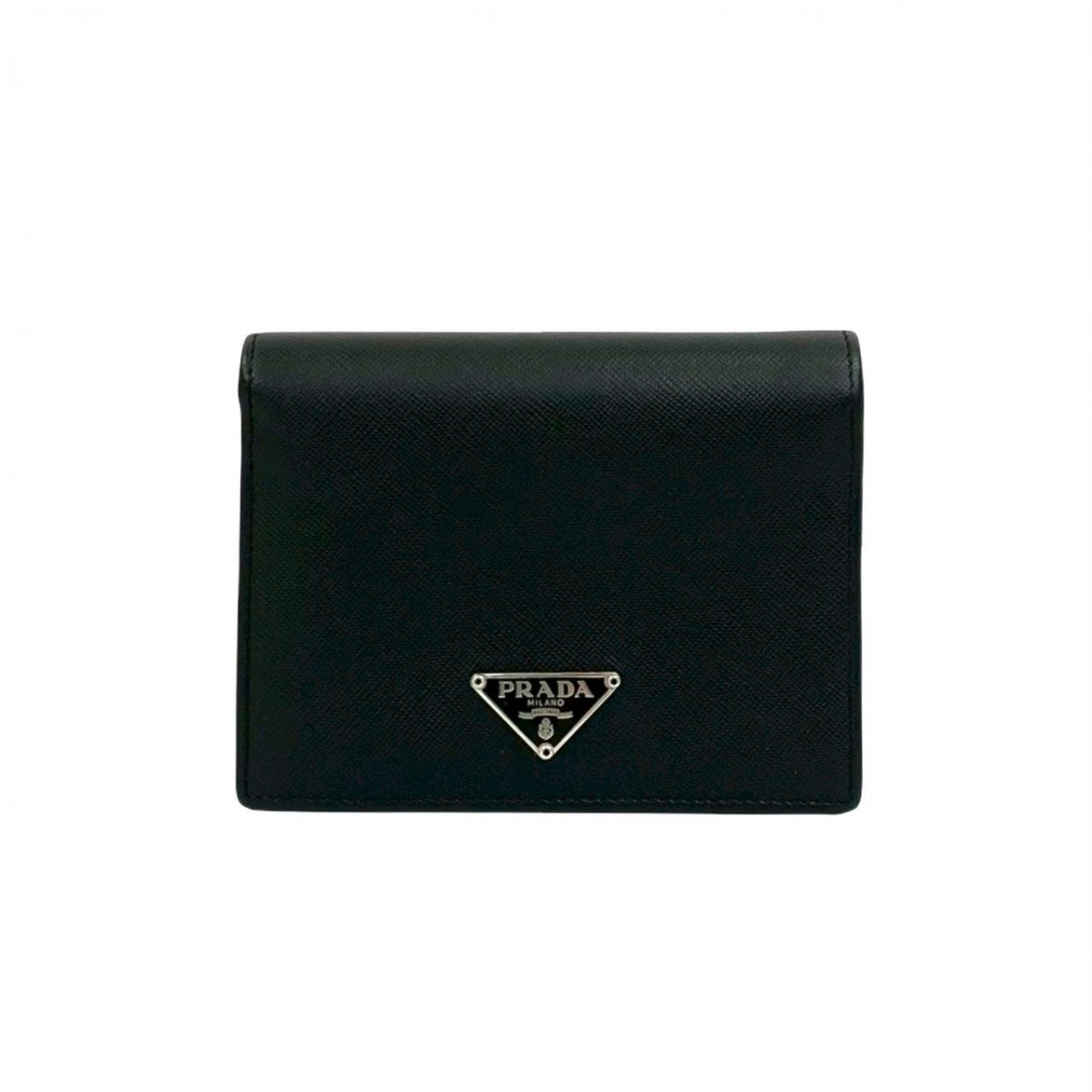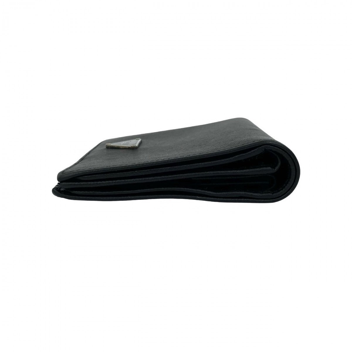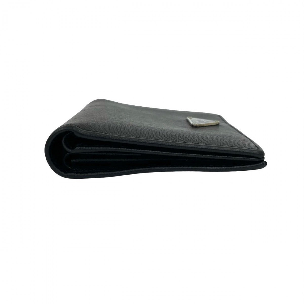 PRADA Bifold Wallet leather black Triangle Logo Metal mens Used Authentic
