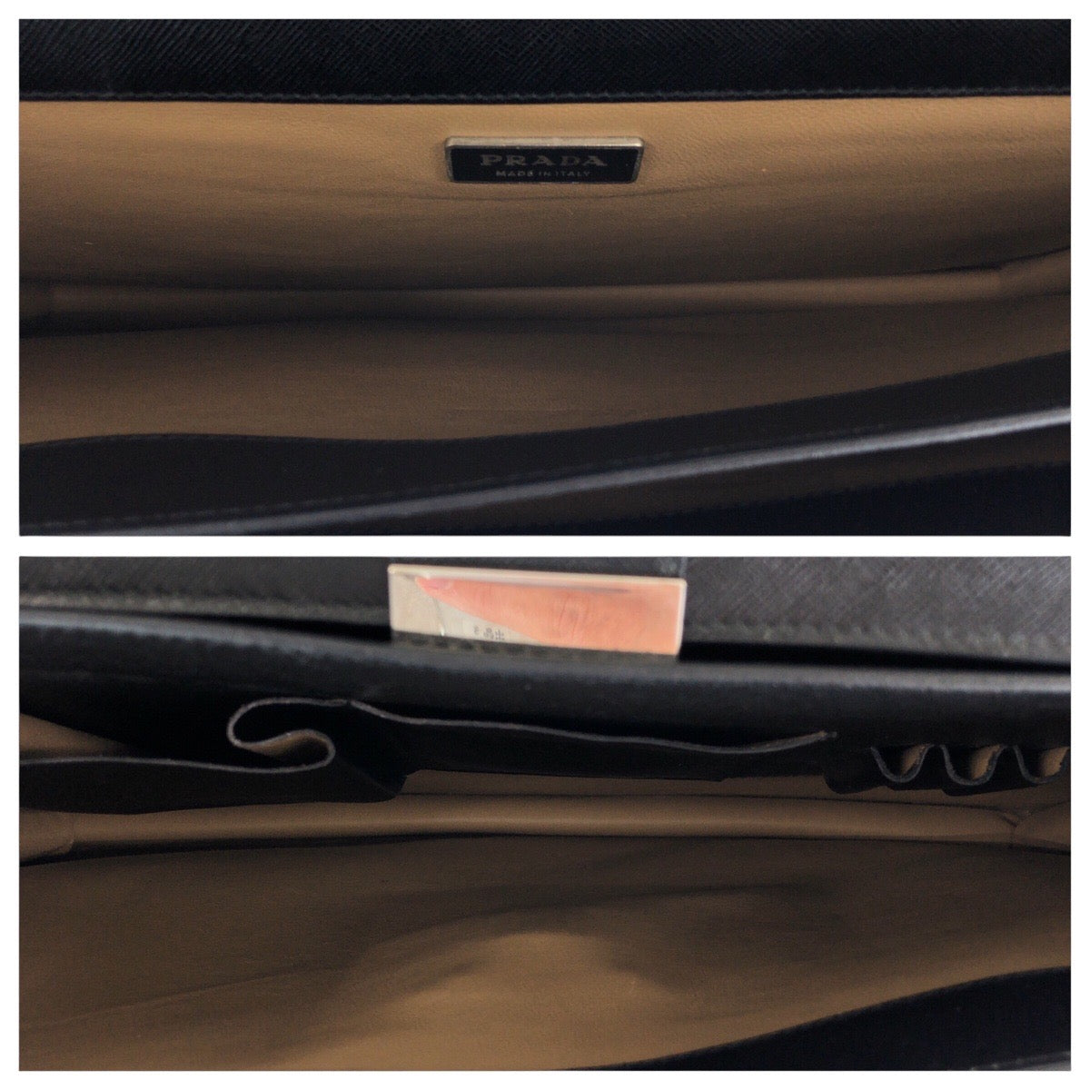 PRADA Business bag leather Black SilverMetal Business bag briefcase Safiano mens Used Authentic