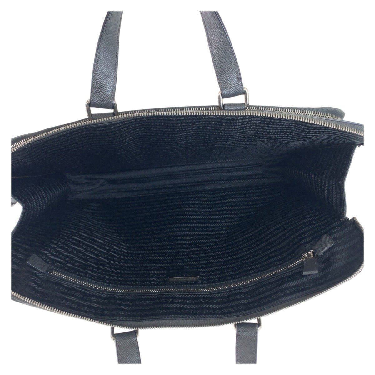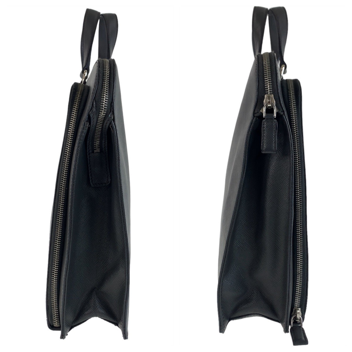 PRADA Business bag leather Dark Grey SilverMetal Business bag briefcase A4 compatible Safiano Triangle With logo mens Used Authentic