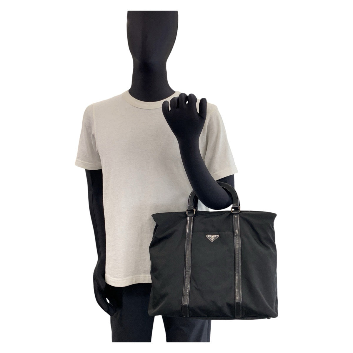 PRADA Business bag Nylon, Leather Black Gunmetal Business bag Briefcase 2way Test Triangle With logo mens Used Authentic