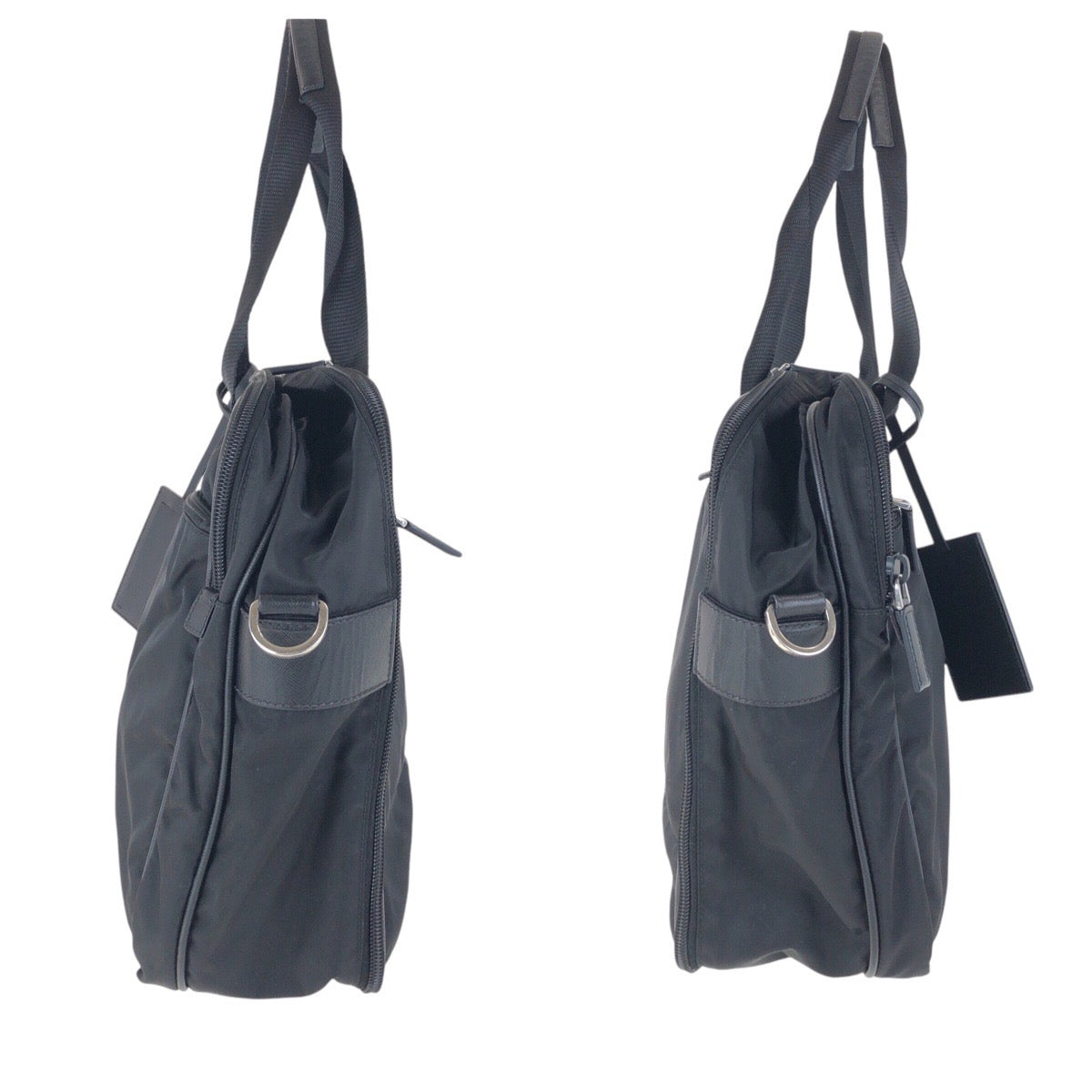 PRADA Business bag Nylon, Leather Black SilverMetal Business bag Briefcase 2way Testo Saffiano Triangle With logo mens Used Authentic
