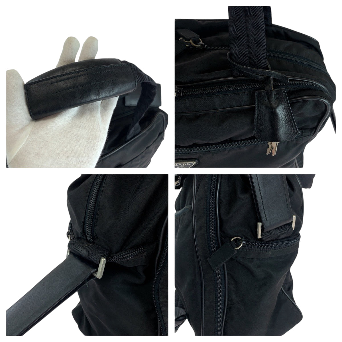 PRADA Business bag V453S Nylon Black SilverMetal Business Bag Shoulder Bag 2way Test Triangle With logo mens Used Authentic