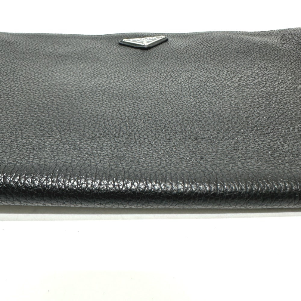 PRADA Clutch bag 2VN014 leather black triangle plate