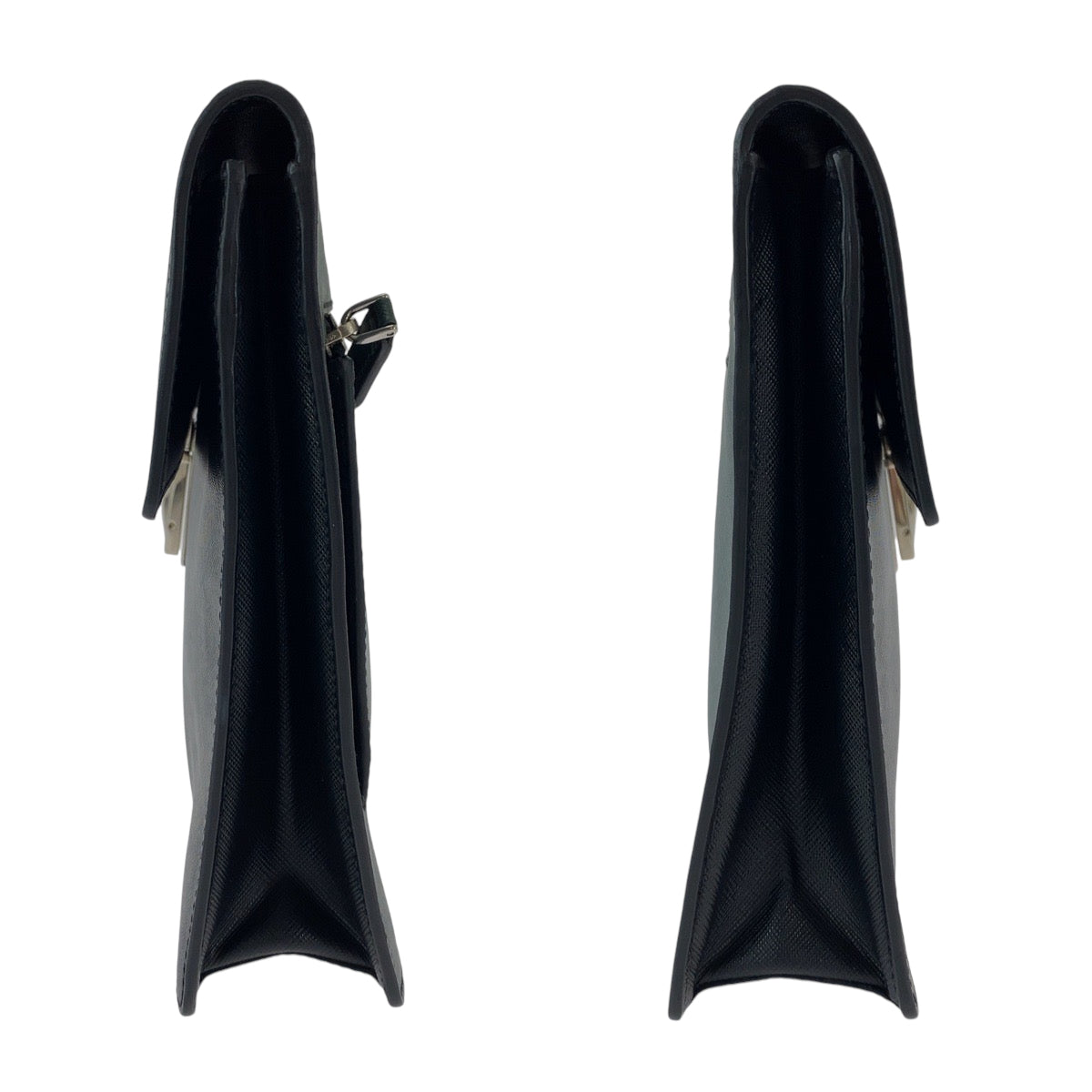 PRADA Clutch bag VR089M leather Bicolor Green Black Clutch bag Business bag Document case Safiano Triangle With logo mens Used Authentic