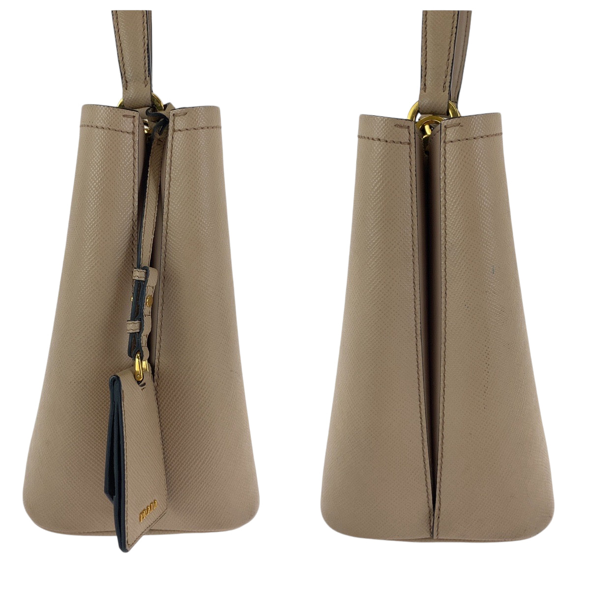 PRADA Handbag 1BA212 leather Pink Beige Gold Metal Handbag Safiano Panniers Women Used Authentic