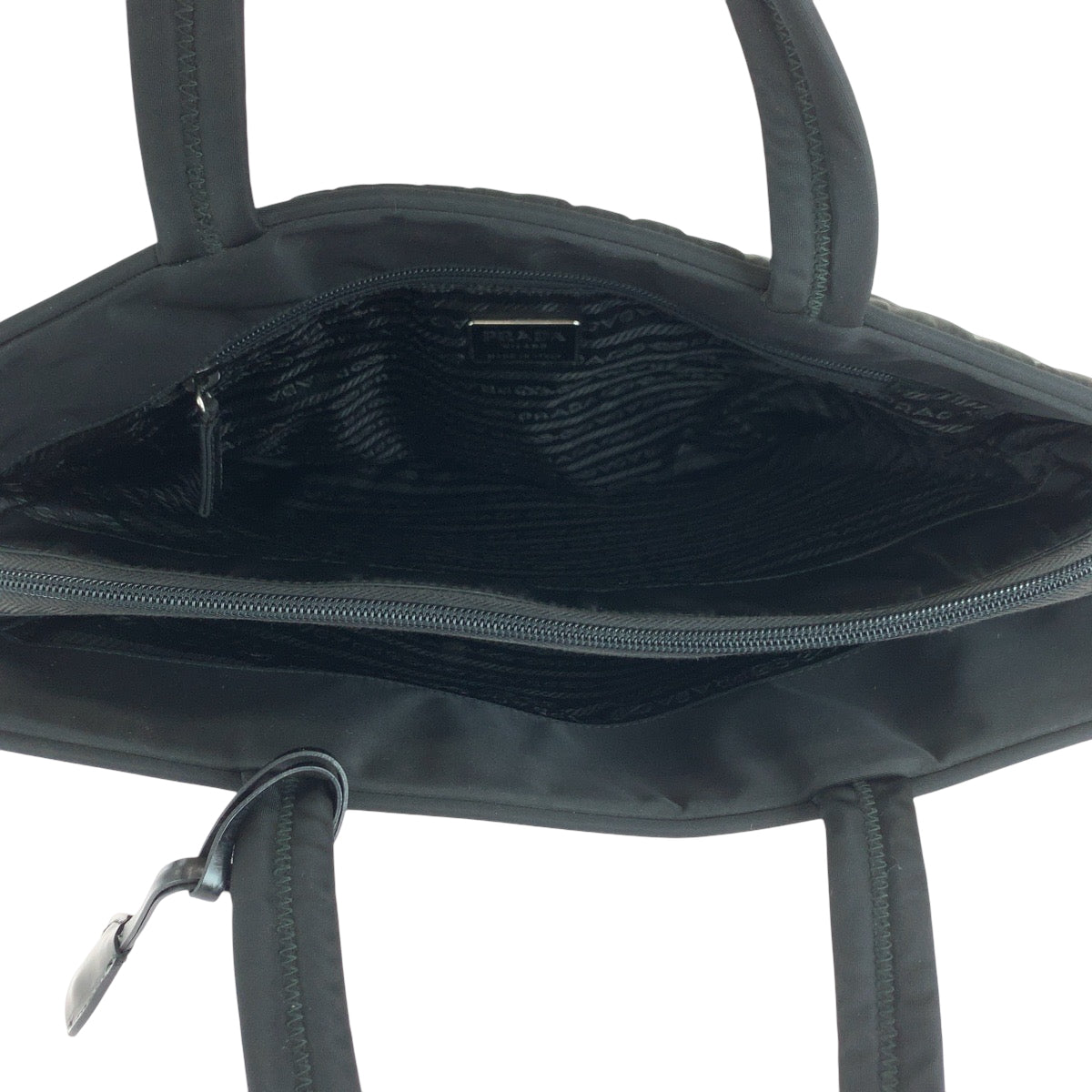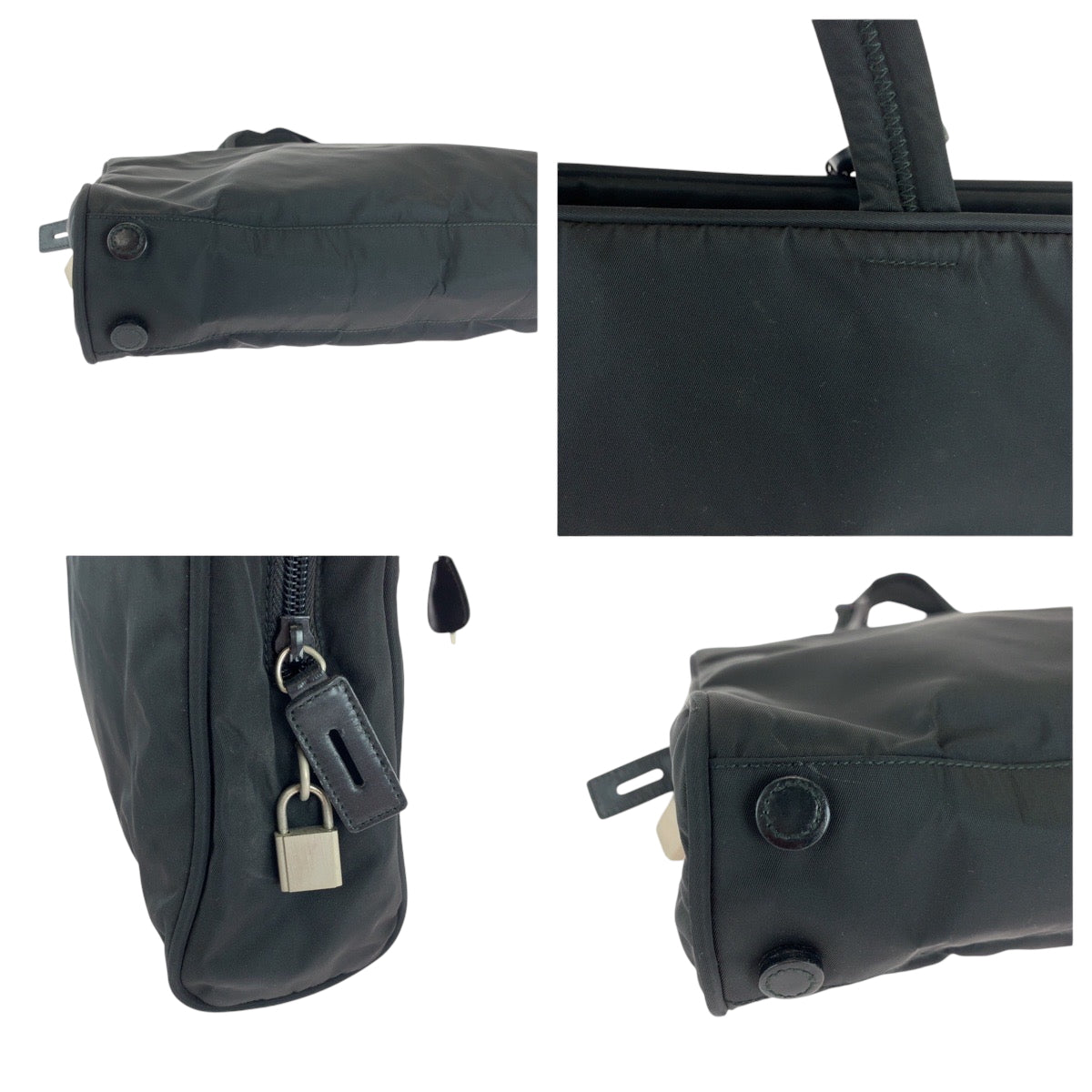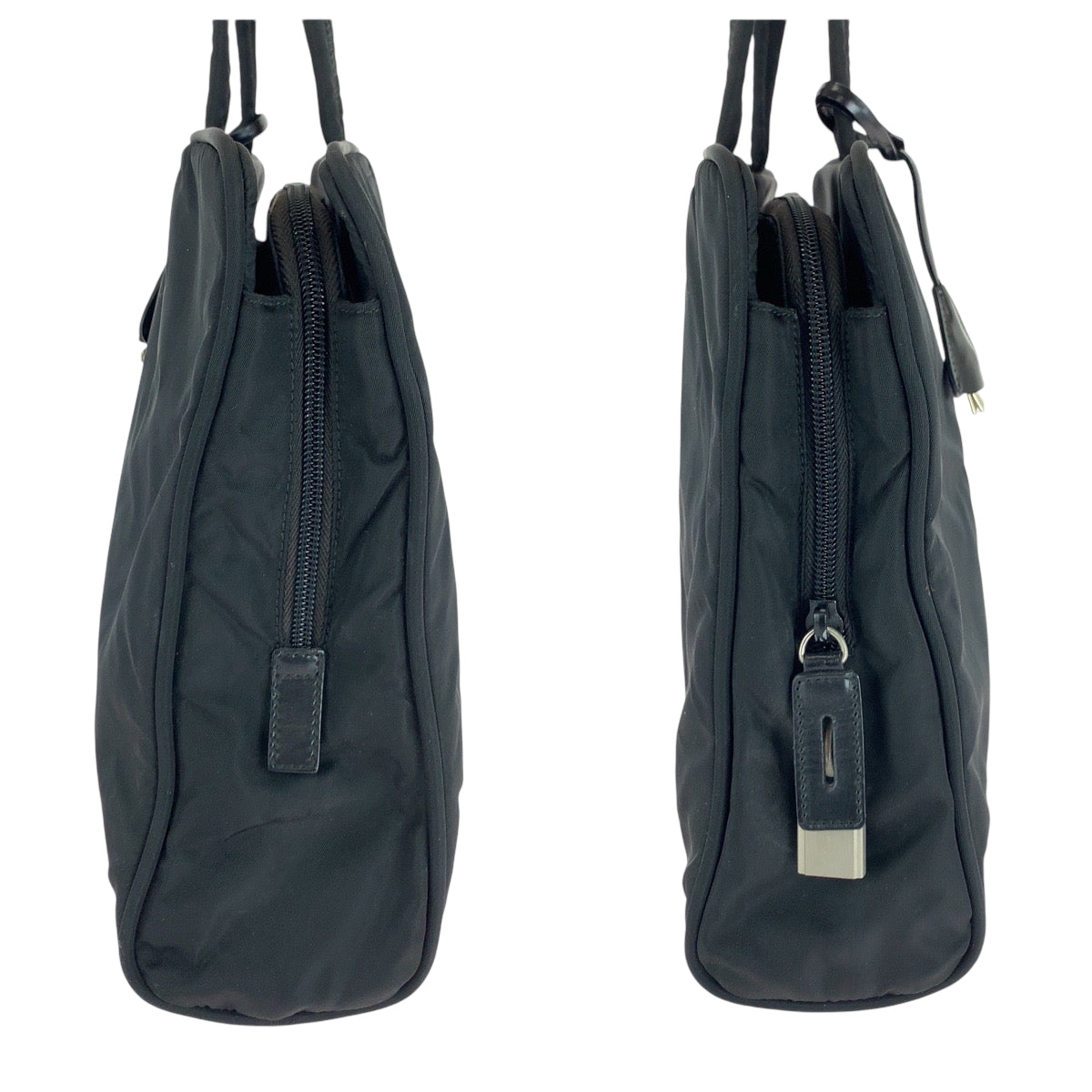 PRADA Handbag B8496 Nylon Black SilverMetal Handbag Tote Bag Test Triangle With logo Women Used Authentic