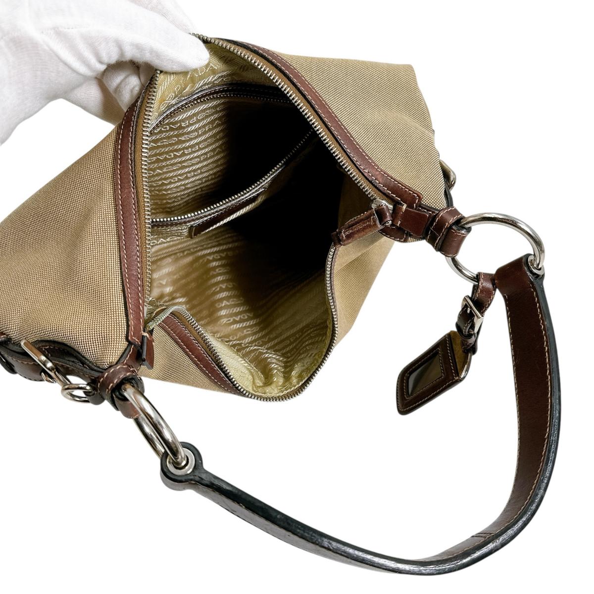 PRADA Handbag BR3423 Canvas, Leather beige one belt Logo jacquard Women Used Authentic