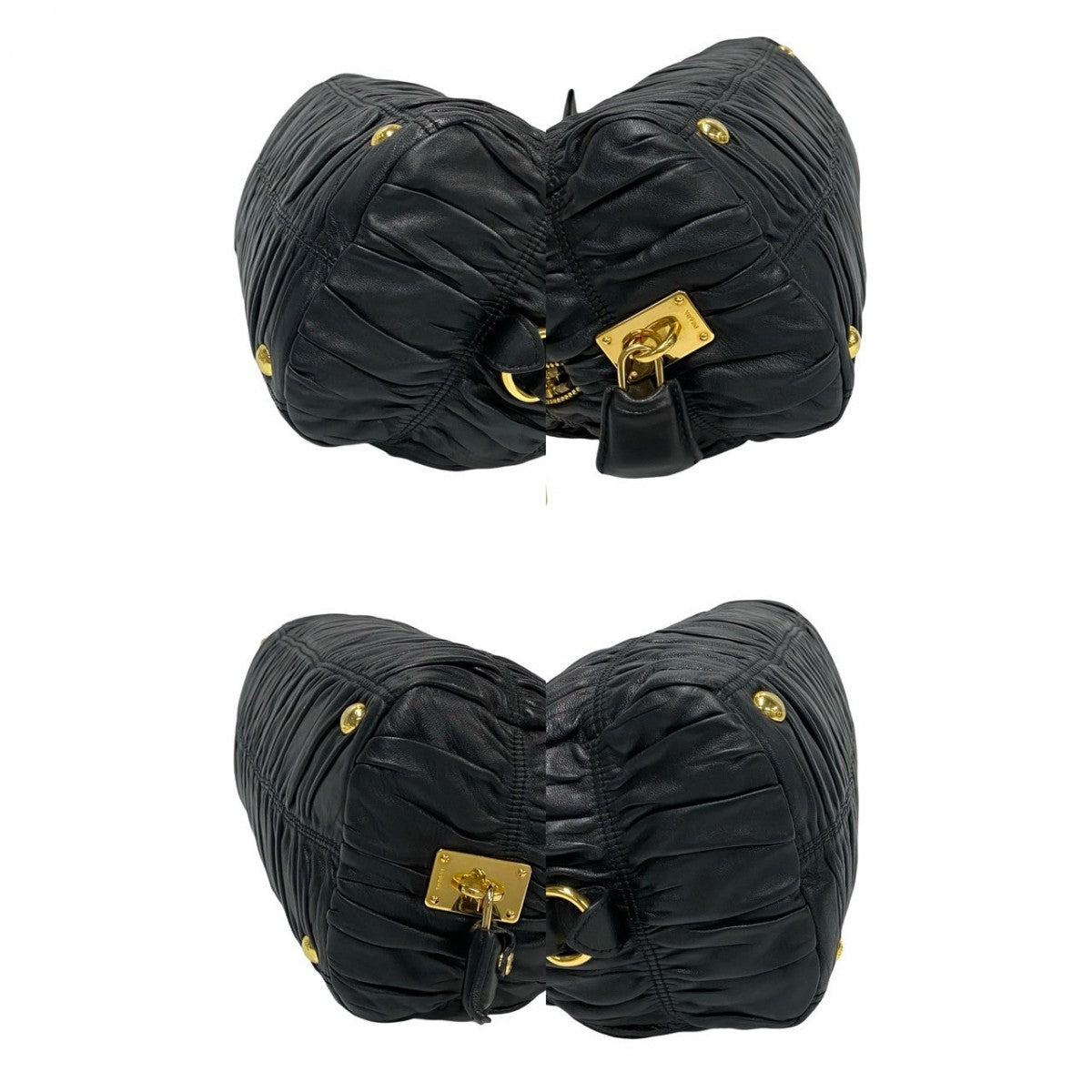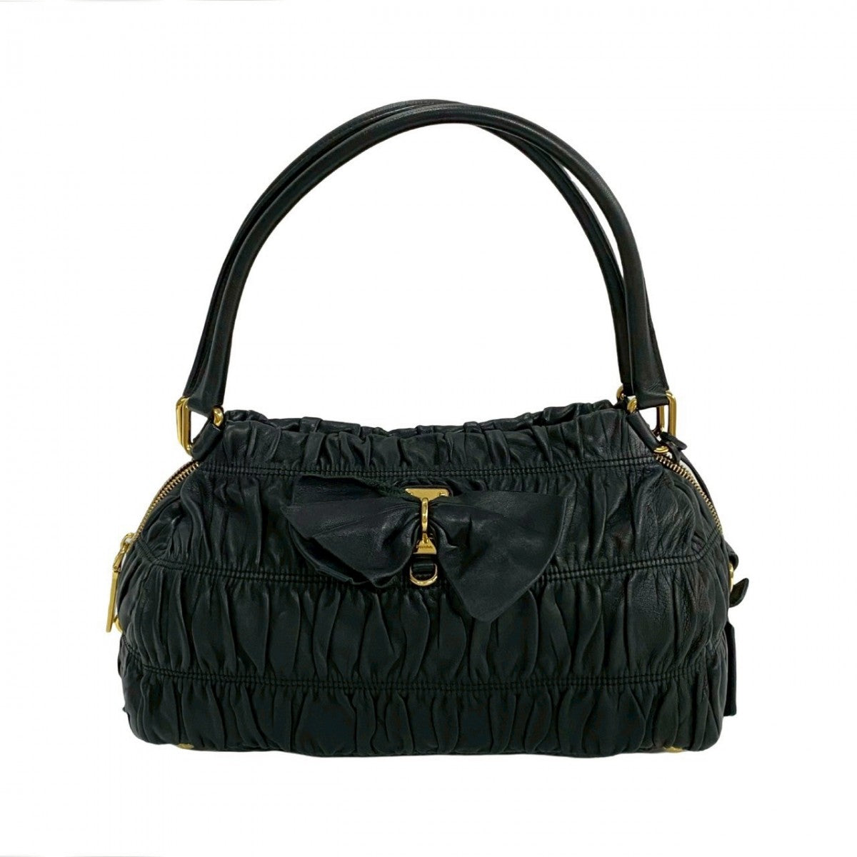 PRADA Handbag leather black PRADA logo Women Used Authentic