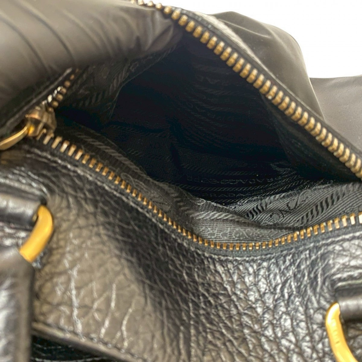 PRADA Handbag Leather, Nylon black Triangular logo Women Used Authentic