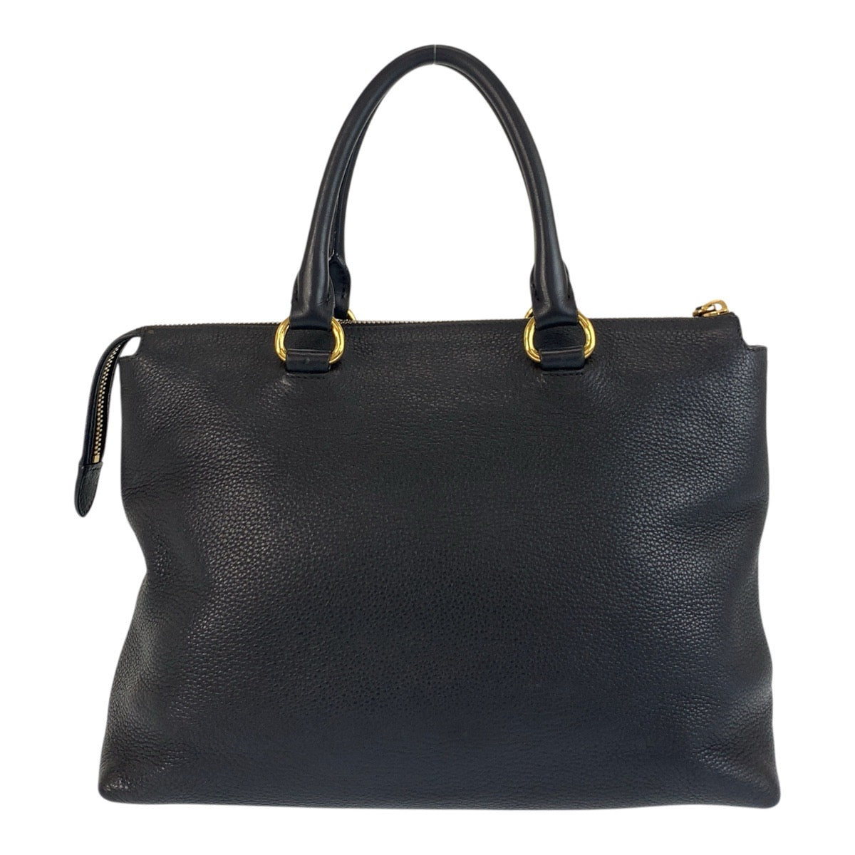 PRADA Handbag leather Black GoldMetal Handbag Tote Bag Vitterodino Women Used Authentic