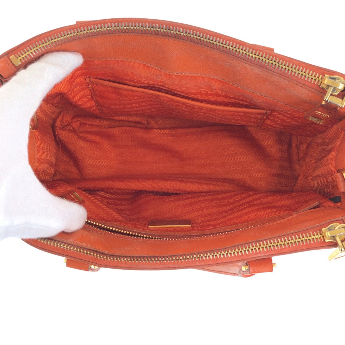 PRADA Handbag leather Orange GoldMetal Handbag Tote Bag Shoulder Bag 2way Safiano Galleria Women Used Authentic