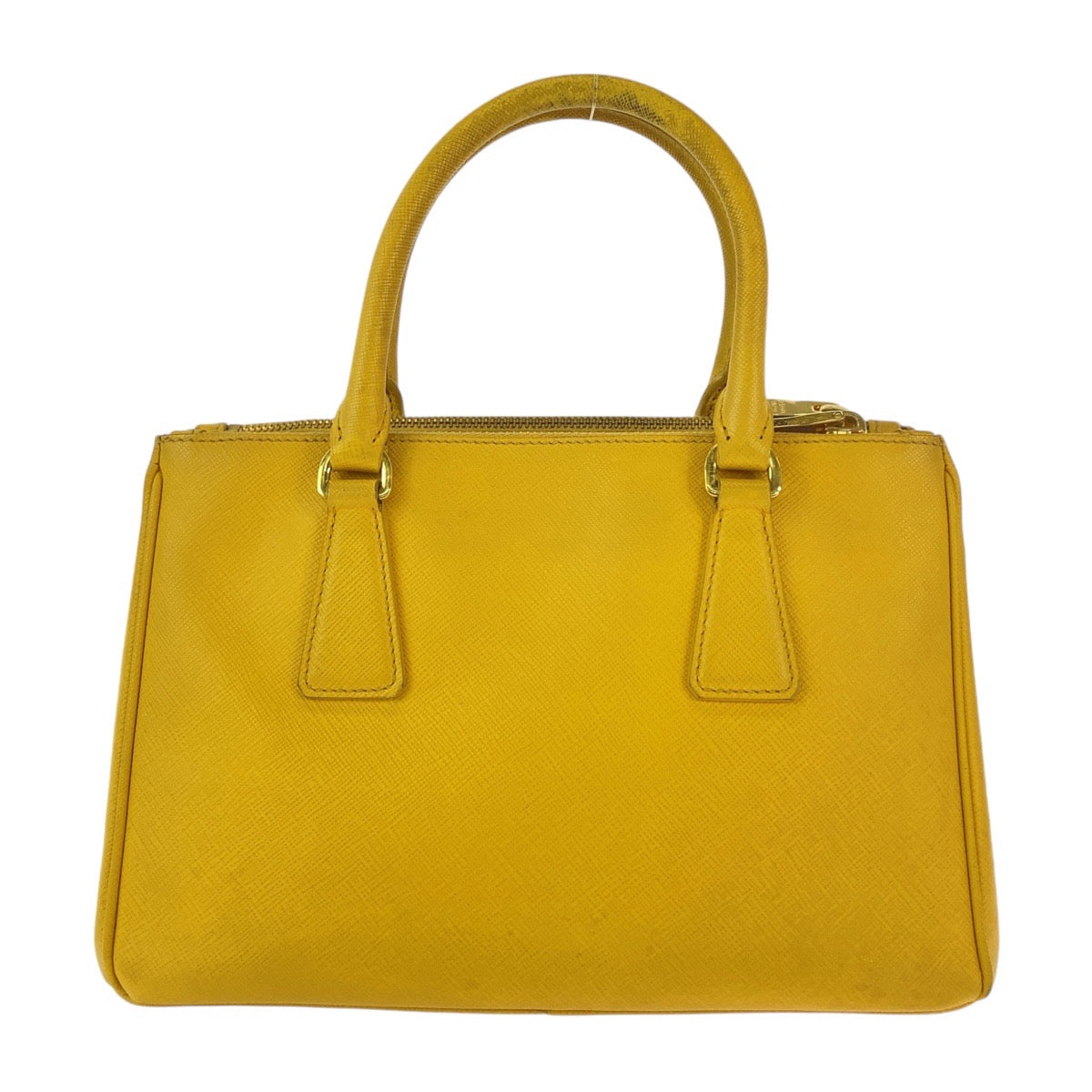 PRADA Handbag leather Yellow Gold Metal Handbag Tote Bag Shoulder Bag 2way Safiano TriangleWith logo Galleria Women Used Authentic