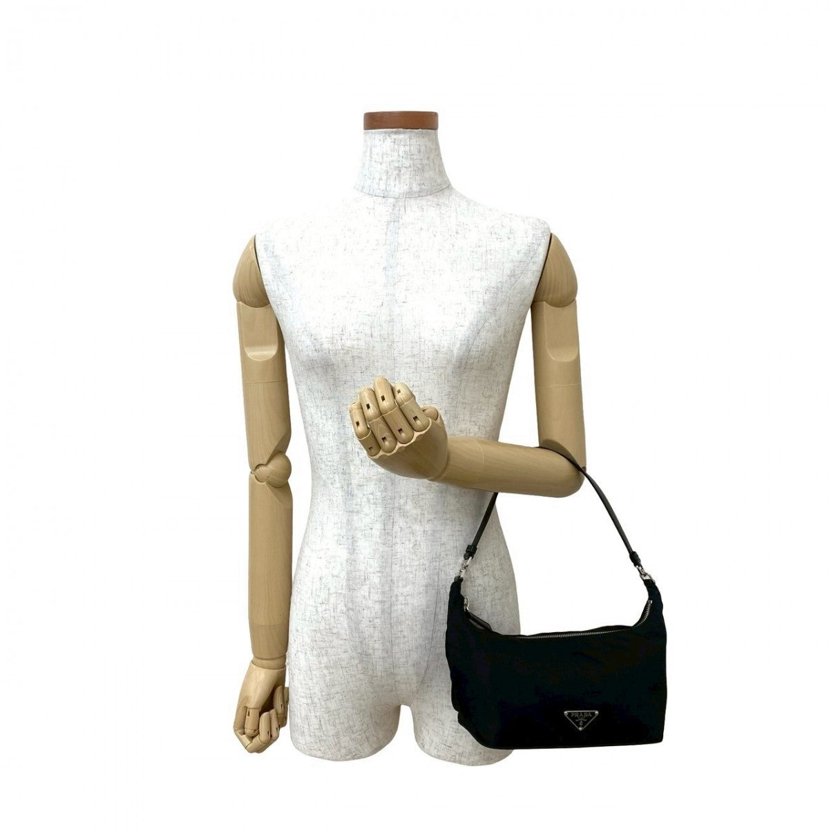 PRADA Handbag Nylon, Leather black Triangle Logo Metal Women Used Authentic