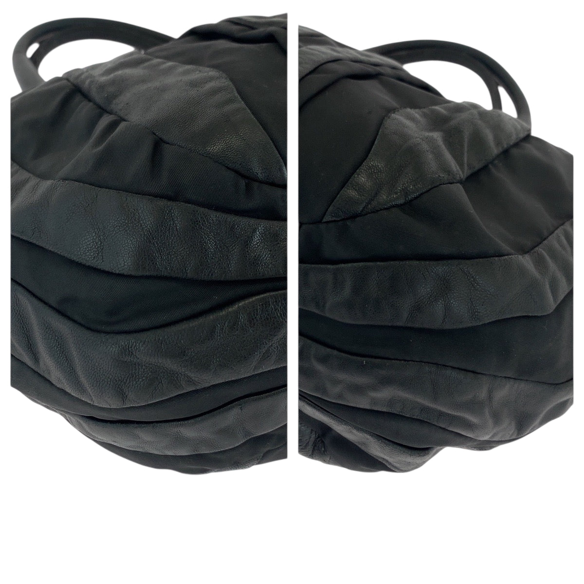 PRADA Handbag Nylon, Leather Black Silver Metal Handbag Shoulder Bag logo Women Used Authentic