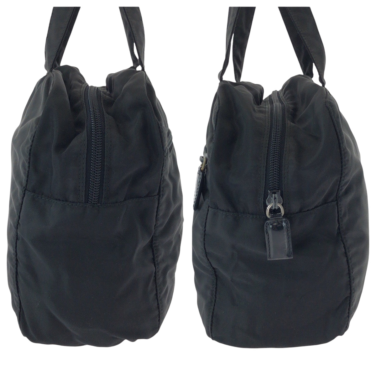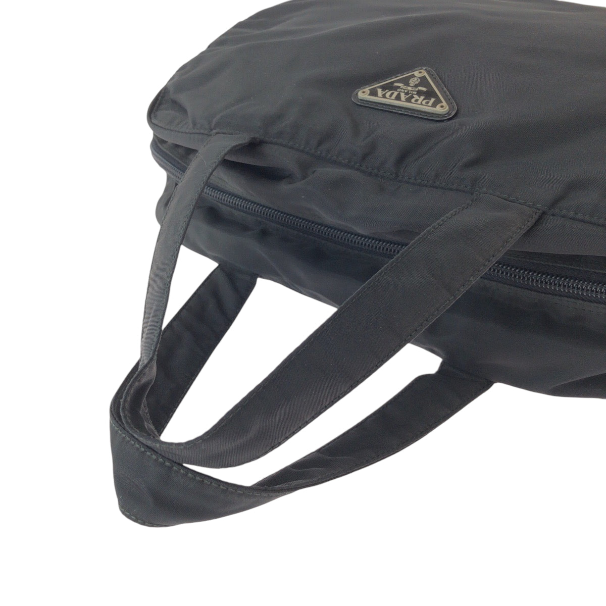 PRADA Handbag Nylon Black SilverMetal Handbag Tote Bag Test Triangle With logo Women Used Authentic