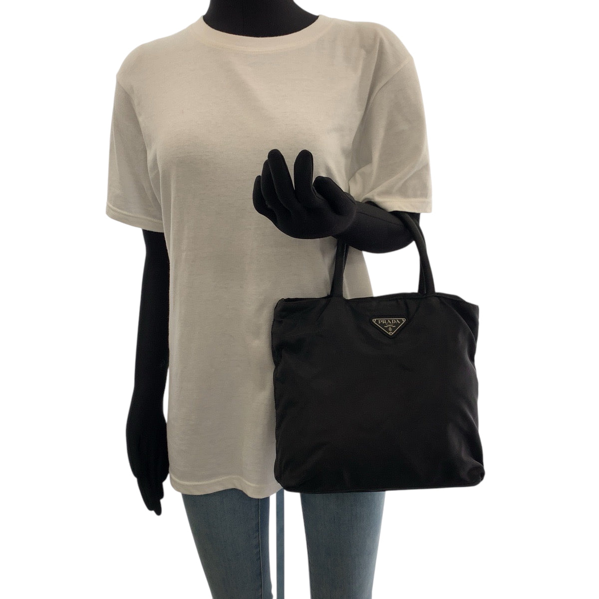 PRADA Handbag Nylon Black SilverMetal Handbag Tote Bag Test Triangle With logo Women Used Authentic