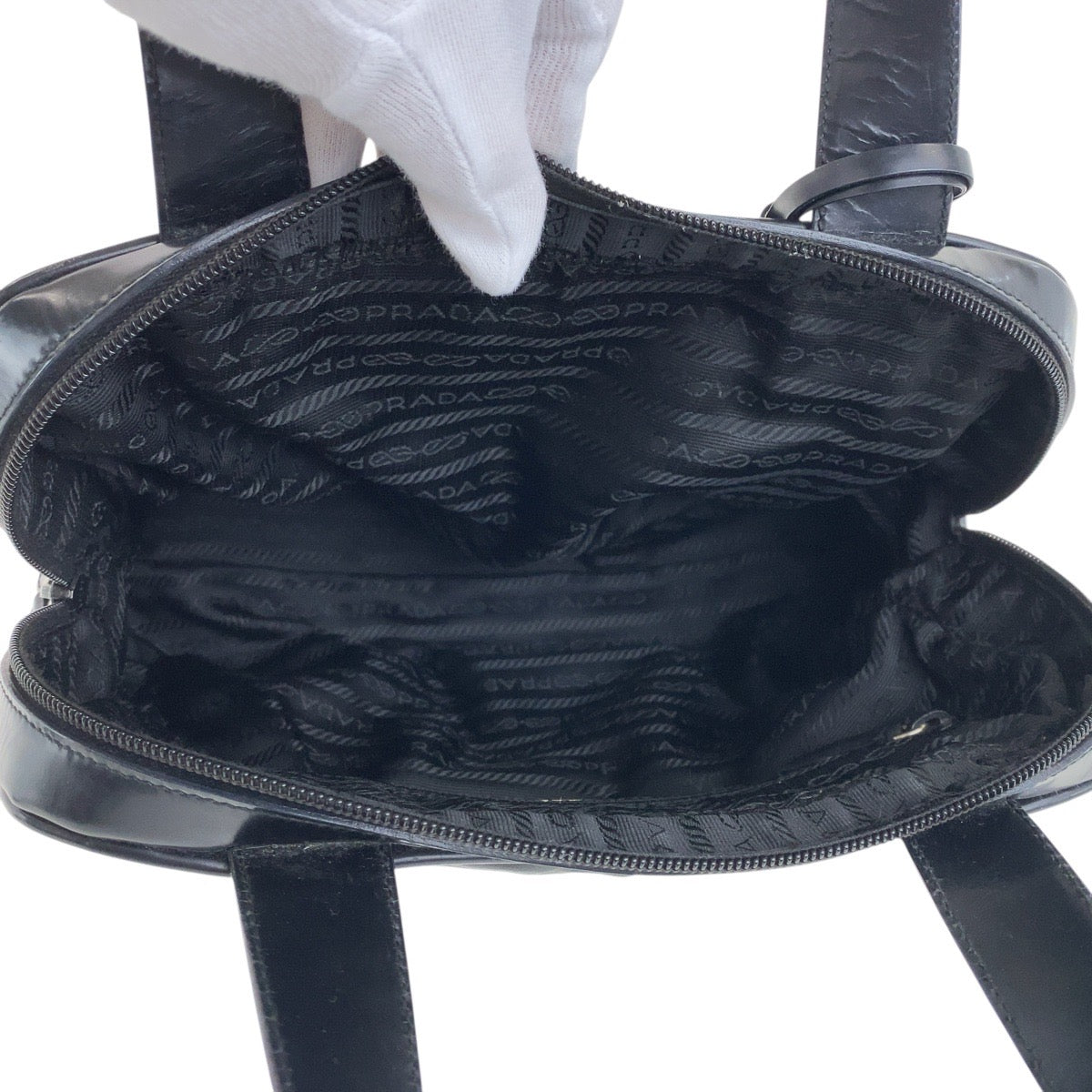 PRADA Handbag Nylon, Leather Black SilverMetal Test Triangle With logo Women Used Authentic