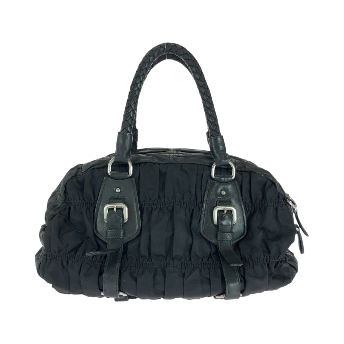 PRADA Handbag Nylon Black SilverMetal Handbag Shoulder Bag Test Triangle With logo Women Used Authentic
