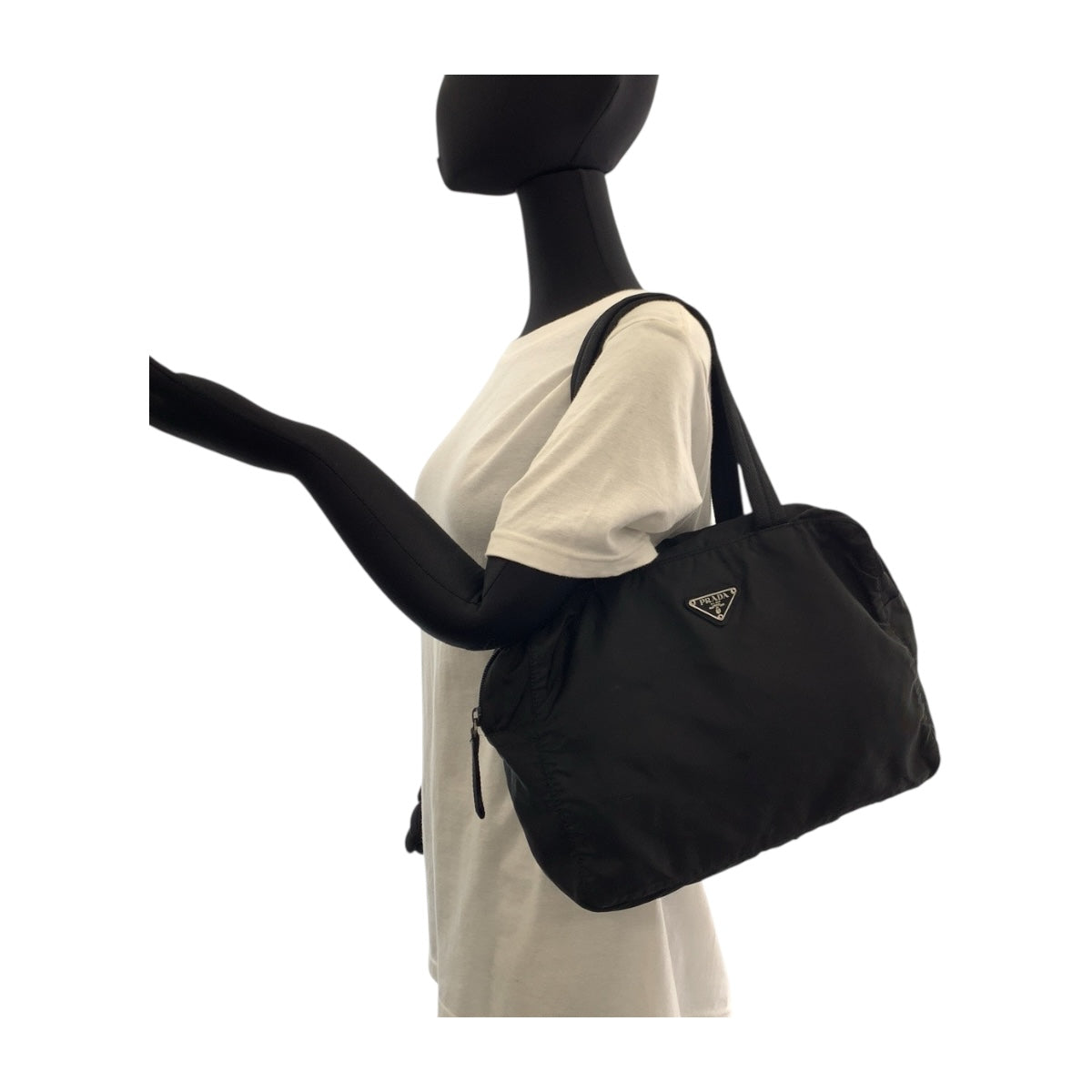PRADA Handbag Nylon Black SilverMetal Test Triangle With logo