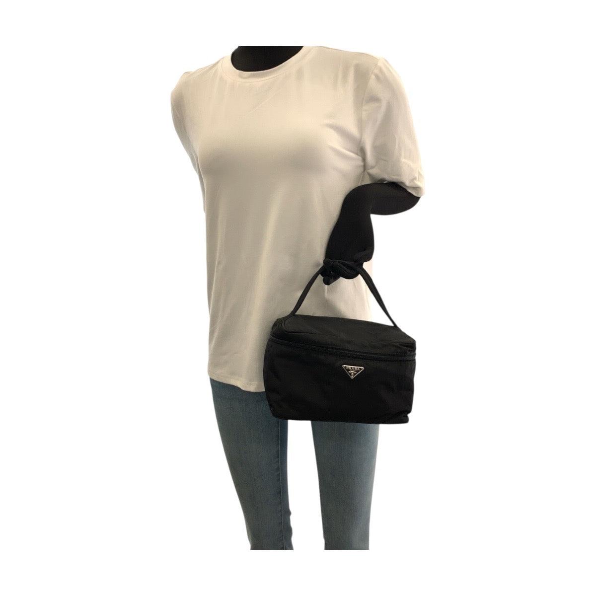 PRADA Handbag Nylon Black SilverMetal Test Triangle With logo