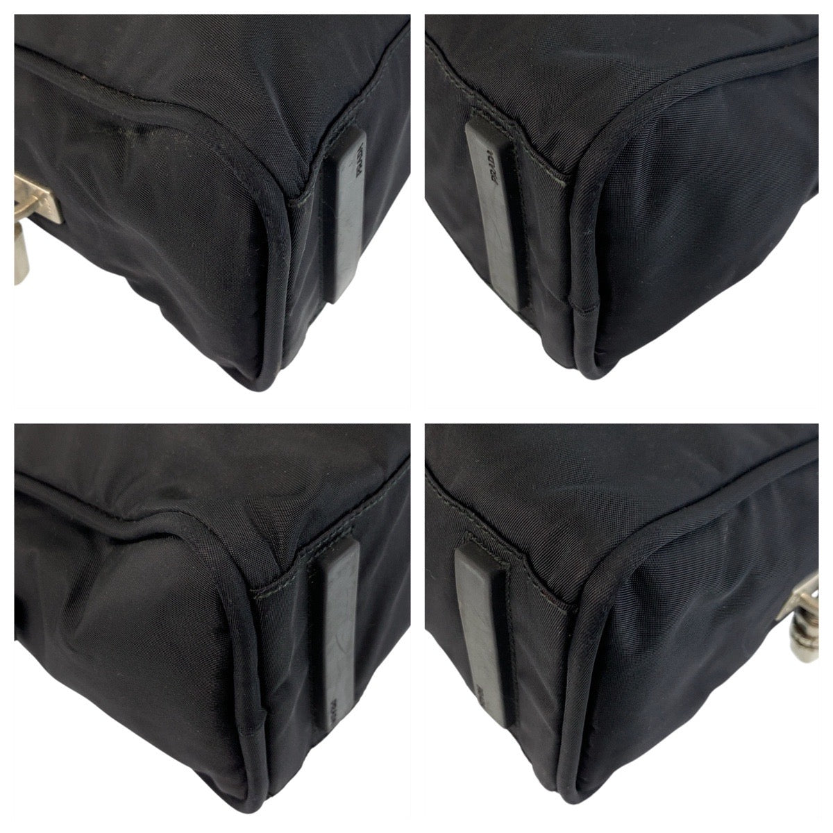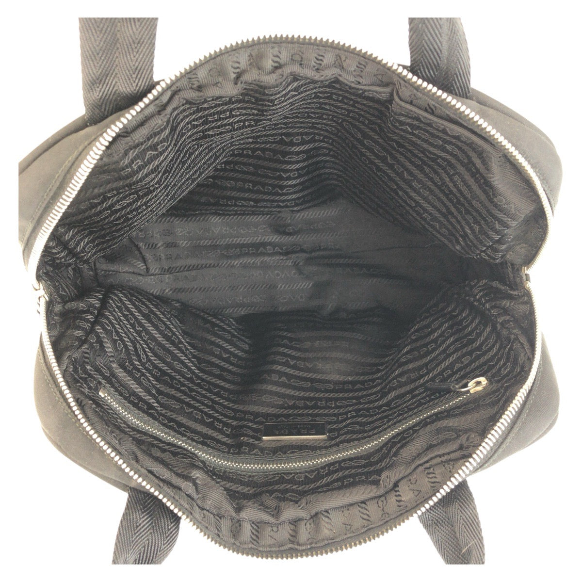 PRADA Handbag Nylon Black SilverMetal Test Triangle With logo Women Used Authentic