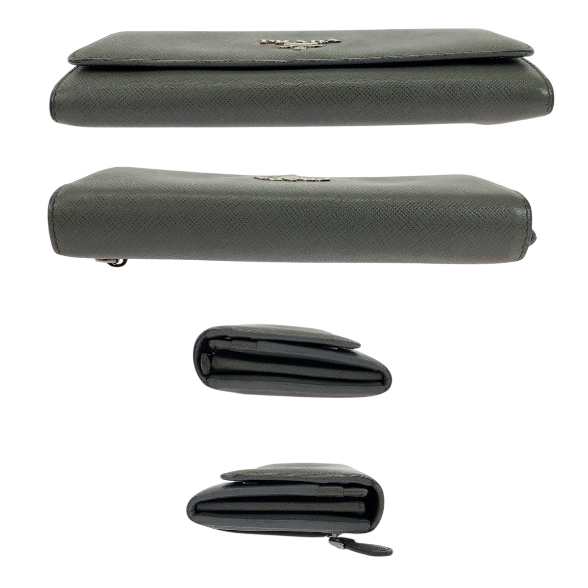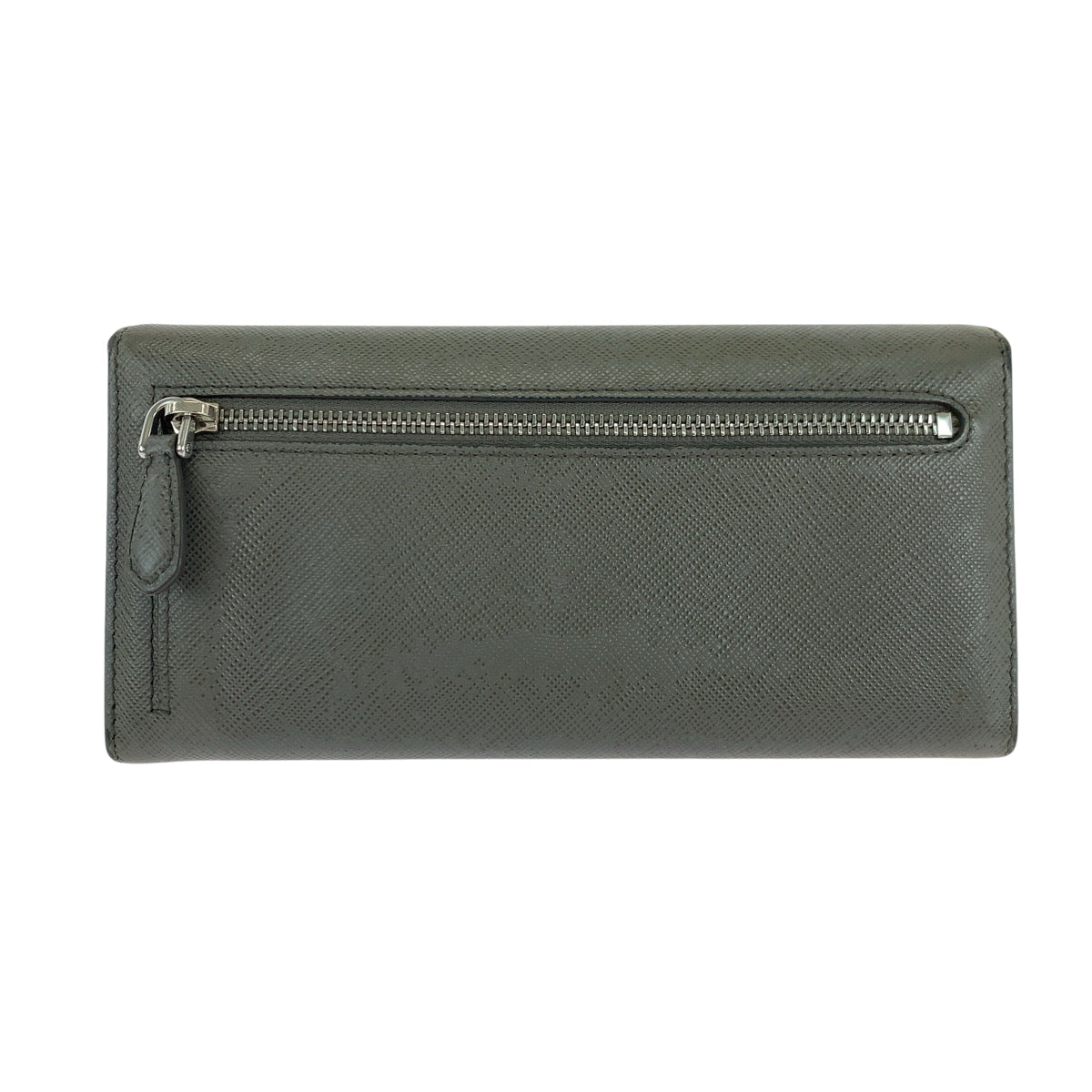 PRADA Long Wallet Purse 1MH132 leather Grey SilverMetal Long Wallet Purse with pass case Safiano logo Women Used Authentic